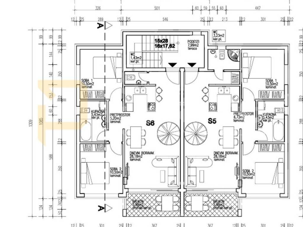 Na drugom katu zgrade nalazi se dvosoban stan oznake S5, ukupne površine 71,58 m² s pripadajućm balkonom površine 5,96 m2 i krovnom terasom 70,78 , krovnom kućicom 7,62 te parkirnim mjestom. Stan se sastoji od hodnika, kupaonice, dvije spavaće sobe, prostranog dnevnog boravka s kuhinjom i blagovaonicom, balkona te krovne terase.