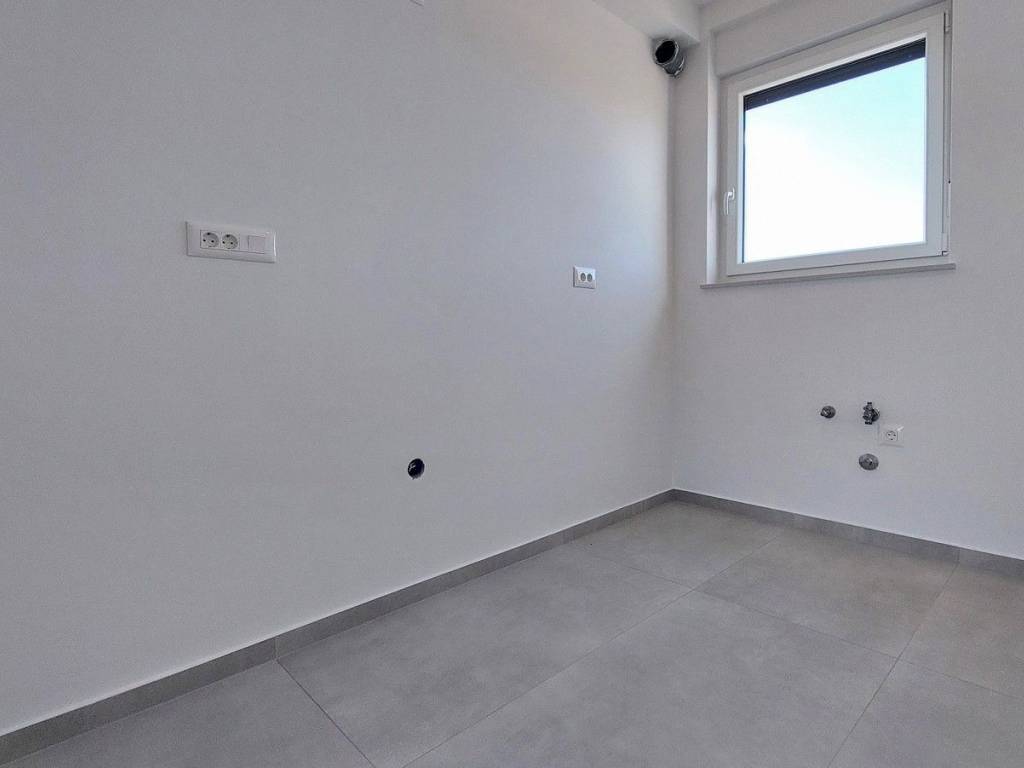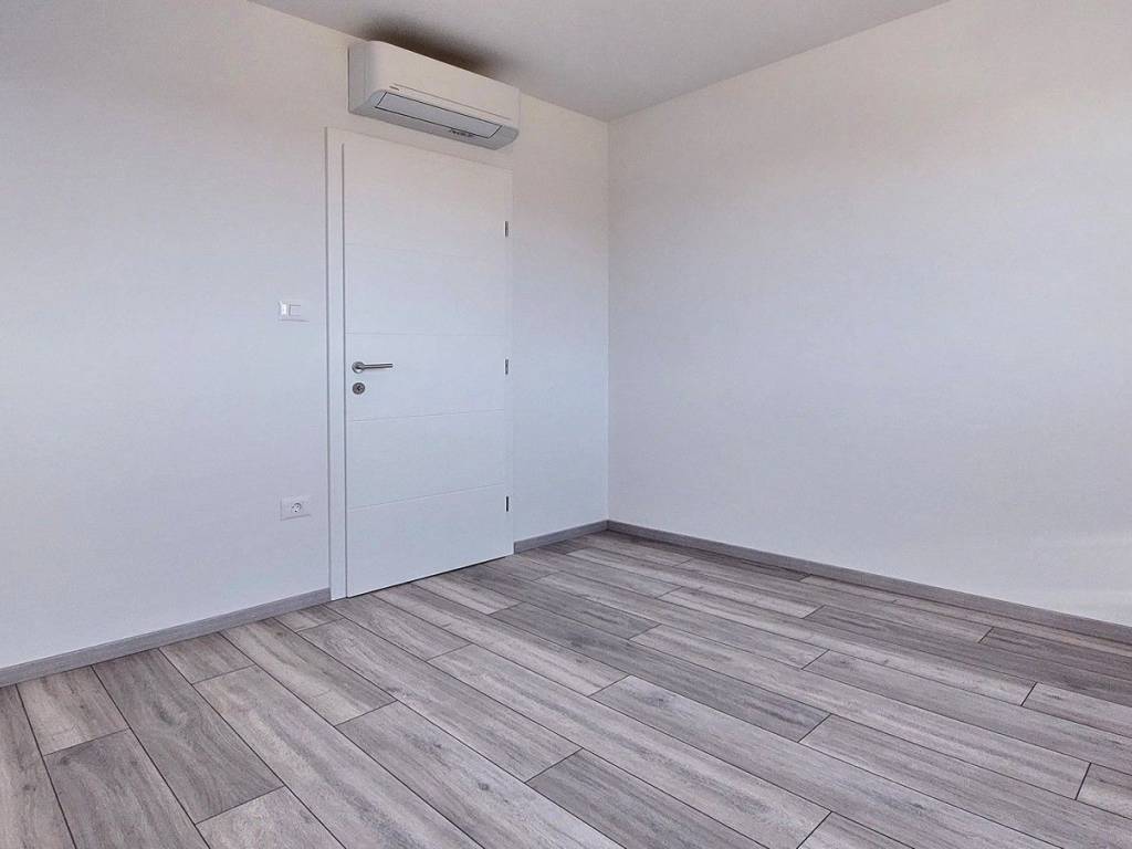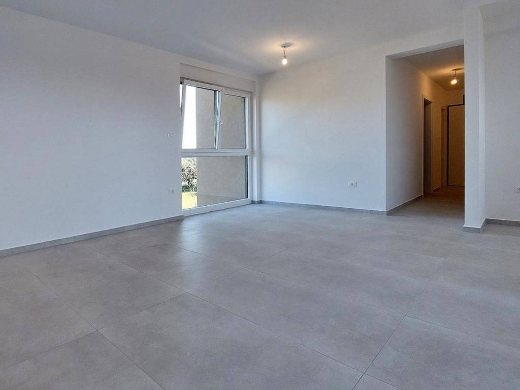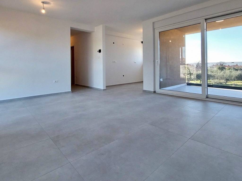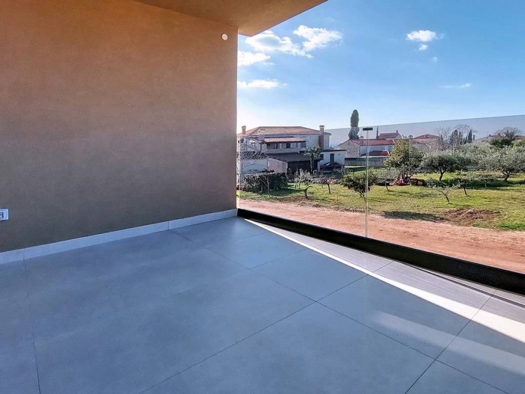 Prodaje se stan u izgradnji u okolici Poreča površine 67 m², sastoji se od dnevnog boravka, blagovaonice, kuhinje, hodnika, natkrivene terase, dvije spavaće sobe, kupaonice i WC-a. Stan se nalazi na prvom katu u zgradi sa liftom, ima pogled na more, podno grijanje na struju u dnevnom dijelu i kupaonici, protuprovalna ulazna vrata, klima uređaj u dnevnom boravku i u spavaćim sobama, spremište u podrumu zgrade površine 5 m² i dva parking mjesta ispred zgrade. Stan je udaljen ca 2,5 km od mora i 9 km od centra Poreča, u naselju se nalaze restorani, kafići, ljekarna, škola i supermarket.