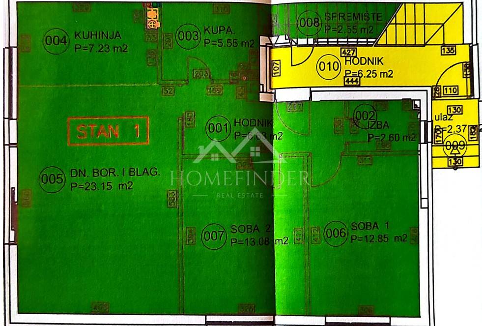 UKUPNA NETO POVRŠINA STANA S PRIPADCIMA: cca 82,61m²