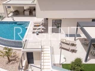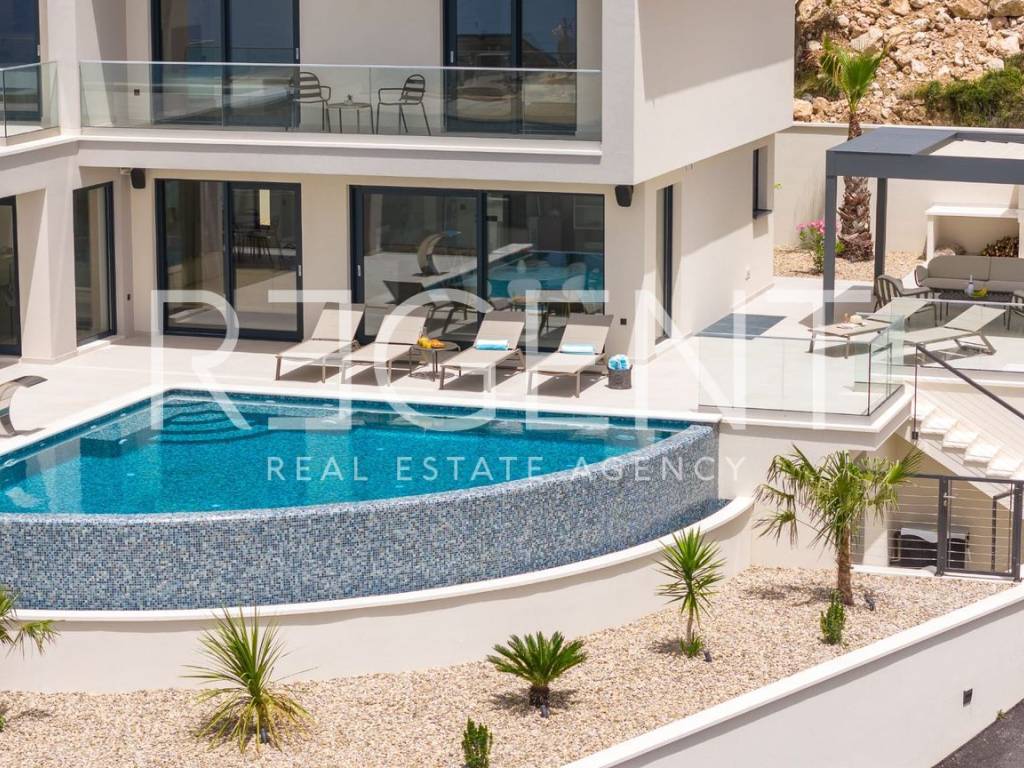U Podstrani je smještena moderna vila s bazenom projektirana kao obiteljska kuća za odmor, koja spaja privatnost, funkcionalnost i suvremeni način stanovanja. Lokacija je poznata po mirnom okruženju, čistom moru i blizini Splita, što omogućuje svakodnevni život uz obalu uz istovremenu povezanost sa svim urbanim sadržajima. Ovakva mikrolokacija posebno je privlačna kupcima koji žele ravnotežu između opuštenog mediteranskog ambijenta i praktičnosti svakodnevnog života. Vila je projektirana kao samostojeća građevina razvedena na tri etaže — podrum, prizemlje i kat — s ukupnom bruto površinom od približno 327 m². Raspored je osmišljen kako bi maksimalno iskoristio prostor i prirodno svjetlo. U podrumu se nalazi garaža za dva vozila te zona za rekreaciju sa saunom i pratećim sadržajima, što stvara privatni wellness prostor unutar kuće. Prizemlje čini otvoreni dnevni prostor s kuhinjom i blagovaonicom te dodatna spavaća soba s kupaonicom, dok se izlazom na terasu dolazi do bazena koji postaje središnje mjesto boravka na otvorenom. Na katu su smještene dodatne spavaće sobe s vlastitim kupaonicama i lođama, osiguravajući privatnost i komfor za obitelj ili goste. Arhitektura prati suvremene standarde gradnje, s naglaskom na energetsku učinkovitost, kvalitetne materijale i dugoročnu trajnost. Projekt predviđa moderan konstrukcijski sustav, toplinsku zaštitu i tehnička rješenja prilagođena cjelogodišnjem korištenju. Vanjski prostor je osmišljen kao produžetak interijera, stvarajući prirodan prijelaz između unutarnjeg i vanjskog života — važan element mediteranskog načina stanovanja. Osim što pruža visok standard stanovanja, nekretnina ima izražen investicijski potencijal. Podstrana je tražena destinacija za luksuzni turistički najam zahvaljujući blizini Splita, atraktivnoj obali i stabilnoj potražnji tijekom cijele godine. Vila je projektirana tako da odgovara i privatnom korištenju i komercijalnom najmu, što omogućuje fleksibilnost vlasniku i dugoročno očuvanje vrijednosti ulaganja. Ova nekretnina predstavlja spoj kvalitetne gradnje, promišljenog dizajna i poželjne lokacije — idealno za kupce koji traže moderan dom uz more ili sigurnu investiciju na razvijenom tržištu. Za više infromacija, kao i dogovor o razgledavanju, slobodno nas kontaktirajte!