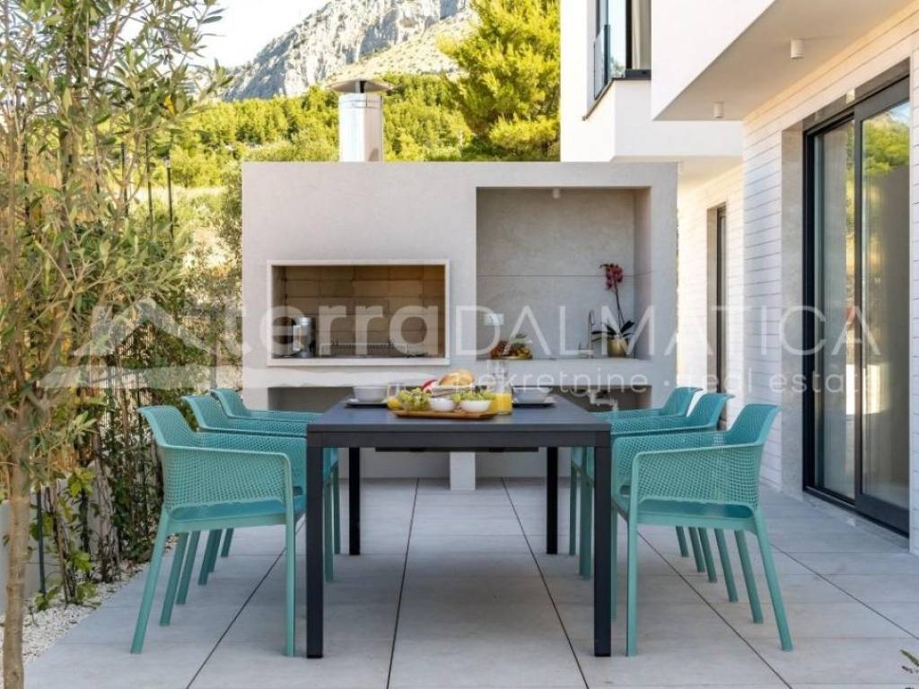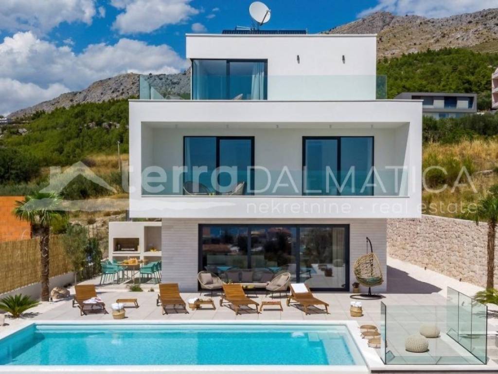 Za idealan odmor i opuštanje u ponudi imamo suvremeno dizajniranu vilu s panoramskim pogledom na more i obližnji arhipelag. Vila je smještena u Podstrani, 15 minuta vožnje od centra Splita. Mirnoća lokacije koja odiše mediteranskim ambijentom, a istovremeno blizina urbanog gradskog središta je ono što čini ovu nekretninu iznimno privlačnom za boravak tijekom cijele kalendarske godine.