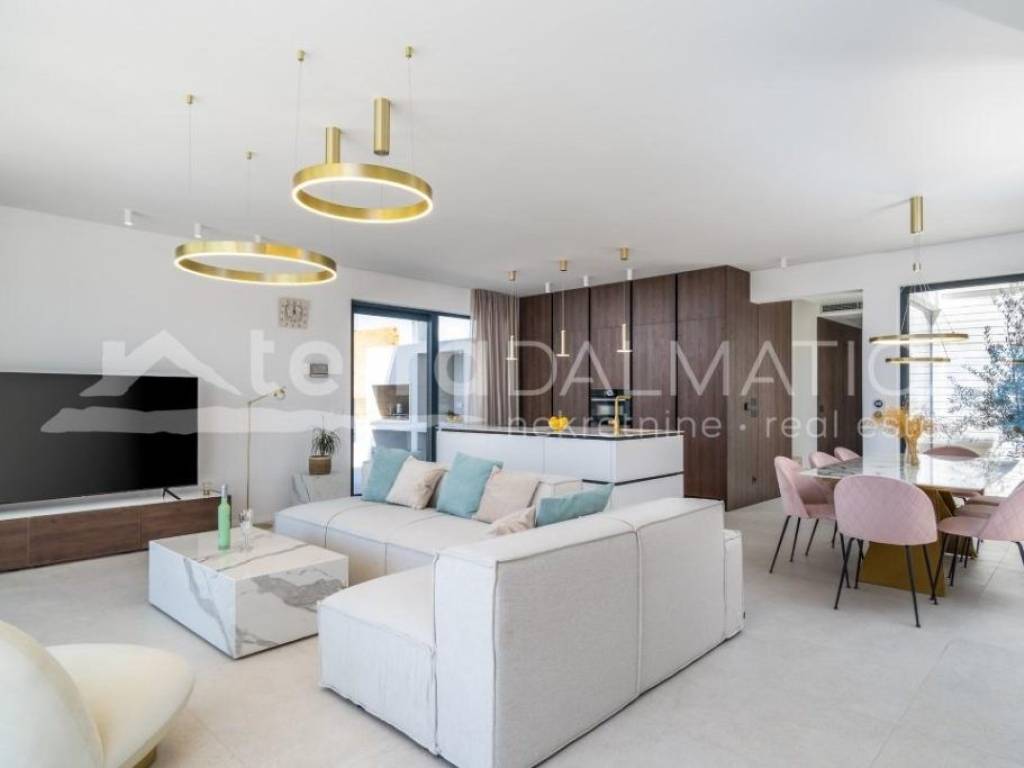 Vila je ukupne tlocrtne površine od 285 m², izgrađena na zemljištu veličine 800 m². Prostire se na tri etaže koje su povezane unutrašnjim stubištem. Prizemlje krasi moderno uređena i opremljena kuhinja, blagovaonica i dnevni boravak s open space konceptom i s direktnim izlazom na terasu i dvorište.