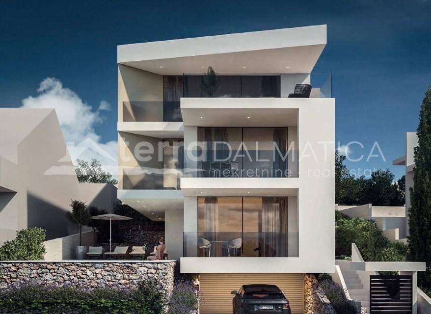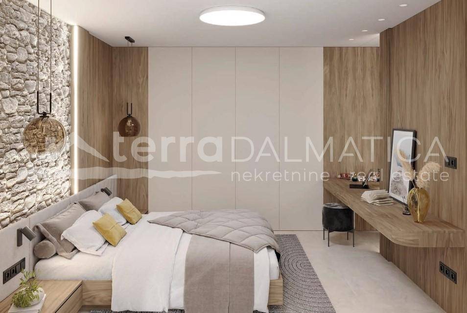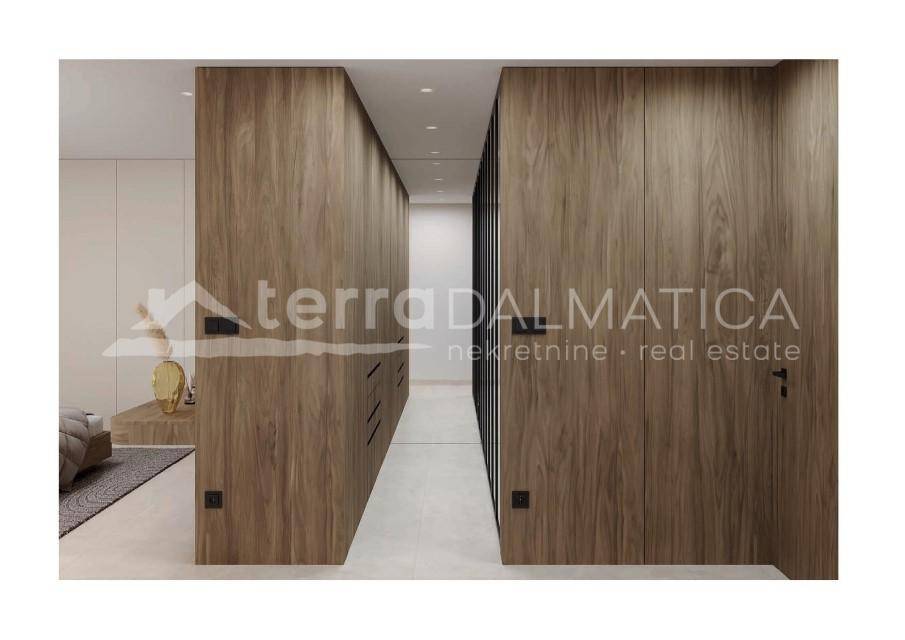 U Rogoznici, u centru mjesta, smjestio se luksuzni penthouse u sklopu vile koja se proteže na tri etaže. Ova moderna nekretnina, koja se proteže na dva kata, pruža ukupnu površinu od 257,47 m², uključujući unutarnji prostor od 141,57 m² te natkrivene i nenatkrivene terase s vrtom. Radi se o ekskluzivnoj trokatnici s podzemnom garažom i privatnim bazenom, a dizajnirana je tako da nudi tri odvojena, potpuno funkcionalna stana za maksimalnu privatnost ili mogućnost komercijalnog najma. Penthouse se sastoji od prostranog dnevnog boravka povezanog s kuhinjom i blagovaonicom, čime se stvara moderan, otvoren prostor za svakodnevni život i druženja, te jedna spavaća soba s en suite kupaonicom i garderobom. Na raspolaganju su također radna soba i gostinjski wc. Na donjoj etaži nalaze se dvije spavaće sobe i kupaonica s walk in tušem. Ovaj penthouse se prodaje potpuno opremljen i spreman za useljenje. U cijenu su uključena dva parkirna mjesta u podzemnoj garaži te spremište. Interijer je opremljen namještajem po mjeri, keramičkim pločicama i vrhunskim podovima, a terase su obložene kamenom, drvetom ili pločicama, ovisno o željama vlasnika. Kupaonice i toaleti su potpuno opremljeni, uključujući sanitarije i rasvjetna tijela. U stanu su ugrađena sigurnosna vrata, unutarnja vrata s magnetskim bravama, sustav podnog grijanja, kao i sustav hlađenja Daikin Emura. Velike klizne stijene od aluminija marke Reynaers omogućuju obilje prirodne svjetlosti, a staklene ograde na terasama dodatno naglašavaju moderan dizajn. Također, stan je opremljen kuhinjom s AEG aparatima, perilicom rublja i vinskim podrumom. Rogoznica je šarmantno primorsko mjesto smješteno na pola puta između Šibenika i Splita. Poznata po svojoj marini Frapa, jedna je od najljepših luka na Jadranu i idealno odredište za nautičare. Osim predivnih plaža i čistog mora, Rogoznica nudi brojne restorane, barove i trgovine, kao i blizinu prirodnih ljepota poput Nacionalnog parka Krka. Zbog svoje mirne atmosfere i odlične prometne povezanosti, Rogoznica je idealna za život ili odmor. Ovaj luksuzna nekretnina u Rogoznici predstavlja savršenu priliku za one koji traže visoku razinu komfora i privatnosti u blizini mora. Uz vrhunsku opremu, predivan pogled i idealnu lokaciju, ova nekretnina nudi sve što vam treba za luksuzni život na Jadranu. U cijenu nije uključen PDV. Za više informacija kontaktirajte našeg agenta/agenticu. Napomena: u oglasu su korišteni renderi.