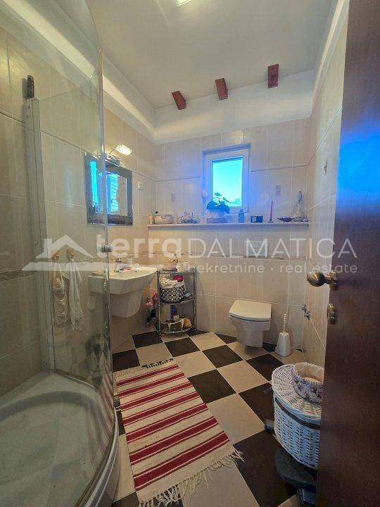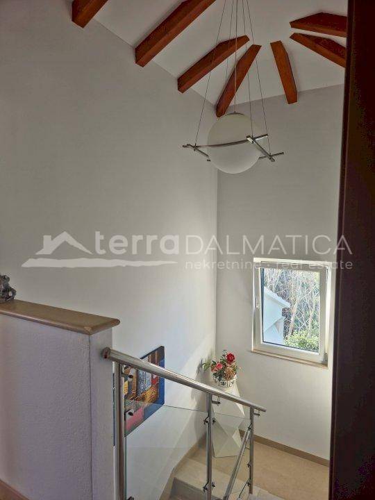 S četiri spavaće sobe i tri kupaonice, kuća nudi obilje prostora za obitelj ili kao investiciju u turizam. Suteren s ljetnom kuhinjom te vrtni skladišni prostor, pristupačan samo izvana, povećavaju funkcionalnost i udobnost nekretnine. Kuća je opremljena klimatizacijom i kaminom u prizemlju, a PVC stolarija s aluminijskim griljama doprinosi energetskoj učinkovitosti i udobnosti.