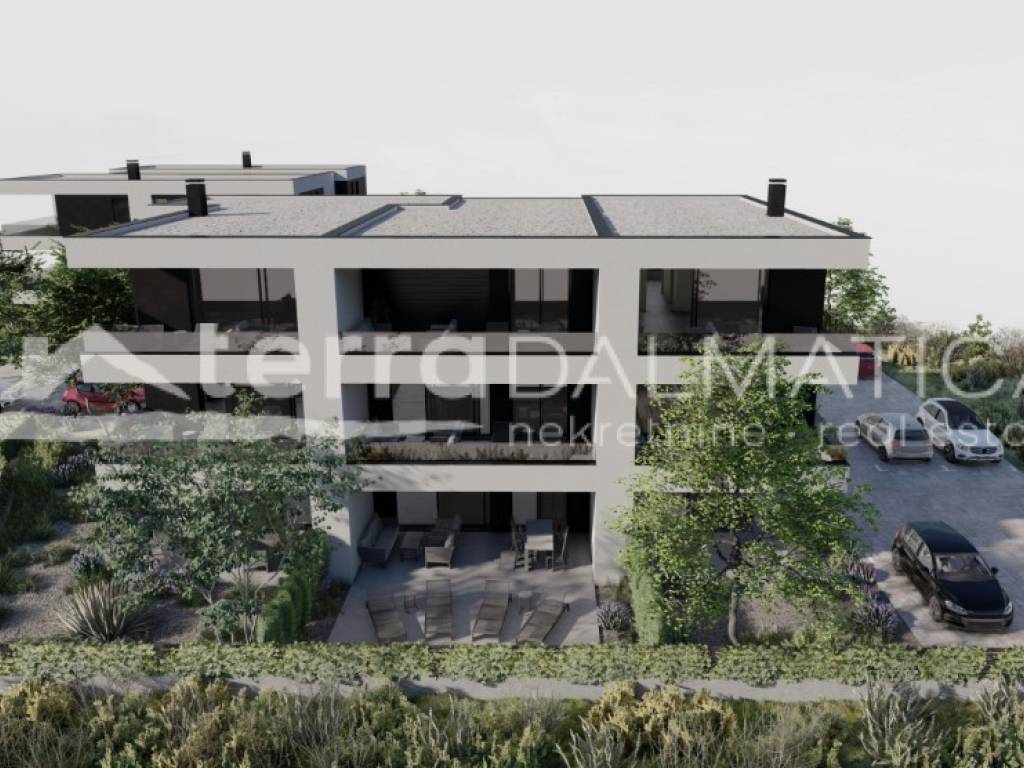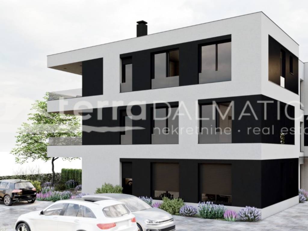 Na prodaju je moderan stan smješten na prvom katu manje stambene zgrade u Srimi kod Vodica, ukupne površine 85,06 m². Stan S3 se sastoji od prostranog dnevnog boravka povezanog s kuhinjom i blagovaonicom, tri spavaće sobe, dvije kupaonice, hodnika te natkrivene terase veličine 17 m². Stanu pripada i parkirno mjesto od 11 m², što dodatno doprinosi praktičnosti. Stan se nalazi 300 m od mora.