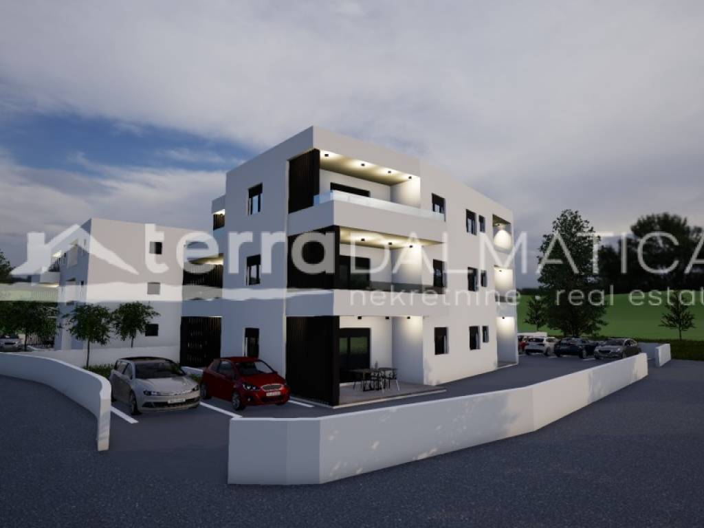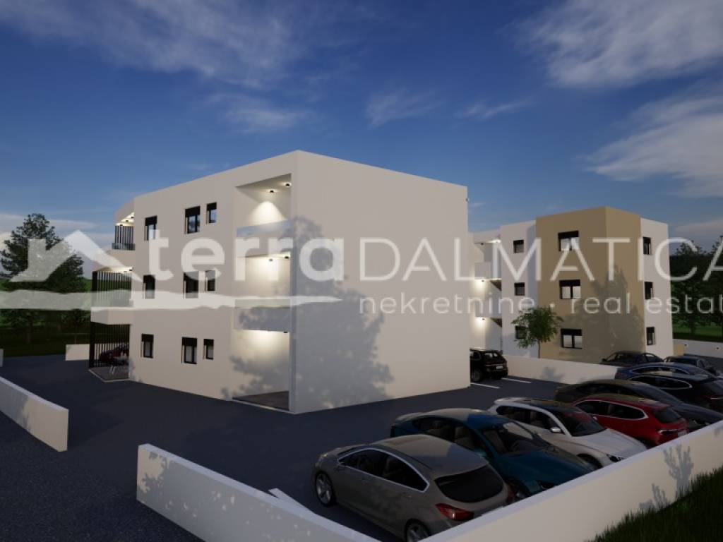 Na prodaju je stan S4, površine 70,05 m², smješten na prvom katu stambene zgrade u novogradnji s planiranim završetkom ljeto 2026. godine. Stan se sastoji od: ulaza, dnevnog dijela, dvije spavaće sobe, kupaonice te prostrane natkrivene terase od 14 m², idealne za uživanje na otvorenom. Opremljen je klima uređajima, a uz stan dolazi i dva parkirna mjesta koje osigurava dodatnu praktičnost. Zgrada se nalazi na mirnoj lokaciji u Vodicama.