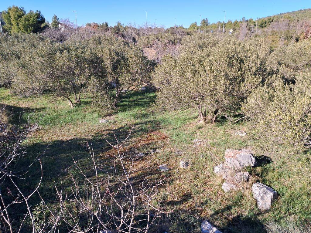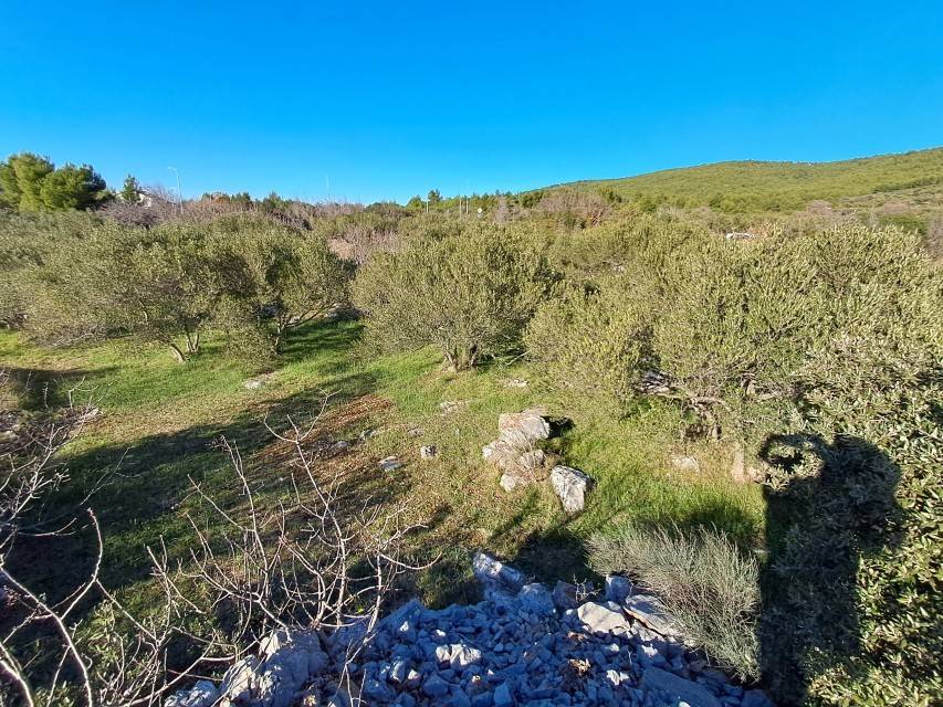 Parcela se nalazi na mirnoj lokaciji i pogodna je za gradnju obiteljske kuće ili kuće za odmor. Udaljena je približno 800 metara od plaže, a s terena se pruža pogled na more.
