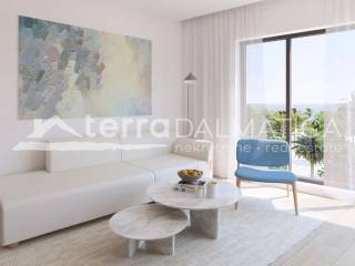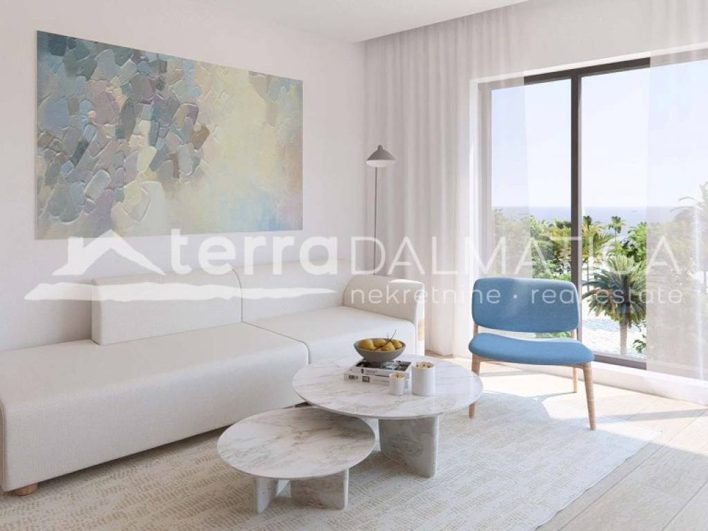 Apartman se sastoji od ulaznog hola koji vodi u prostrani dnevni boravak, blagovaonicu i kuhinju otvorenog koncepta. Dnevni prostor osmišljen je kao centralna zona stana s izravnim izlazom na terasu i pogledom koji dominira cijelim prostorom.Apartman ima tri spavaće sobe, od kojih je jedna s vlastitom kupaonicom, dvije prostrane kupaonice opremljene kvalitetnim sanitarijama te dodatnim toaletom za goste, što osigurava visoku razinu funkcionalnosti i privatnosti.