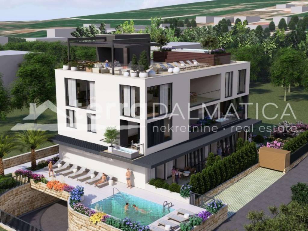 Na prodaju je iznimno luksuzan apartman smješten na zadnjem katu stambene zgrade u Sukošanu, ukupne površine 249 m², koji se ističe vrhunskom prostornom organizacijom, visokim standardom opreme i spektakularnim panoramskim pogledom na Jadransko more. Ova nekretnina predstavlja savršenu sintezu suvremenog luksuza, komfora i mediteranskog načina života.