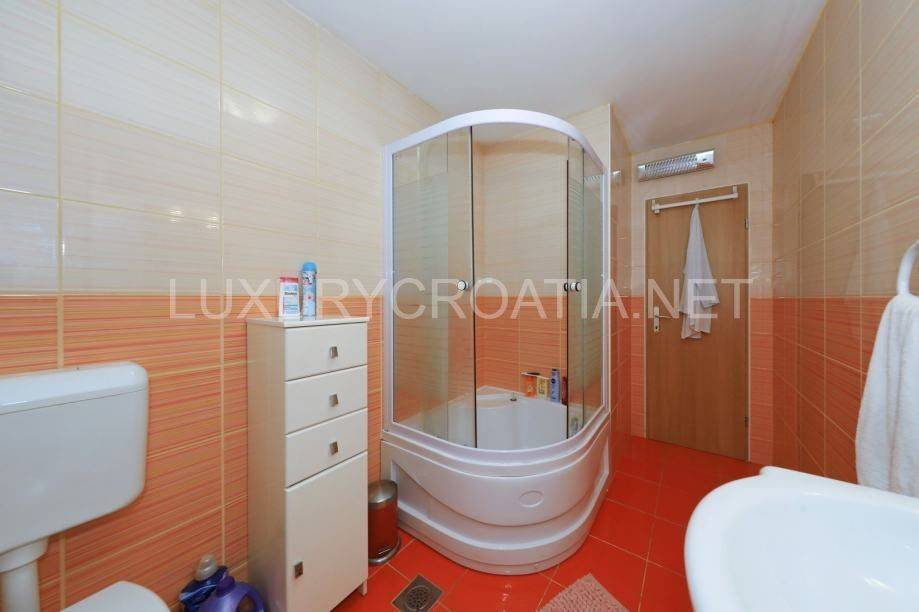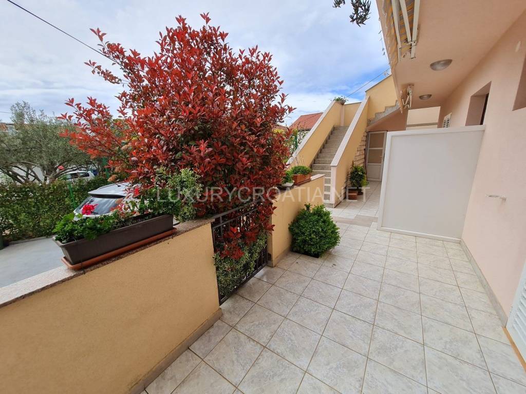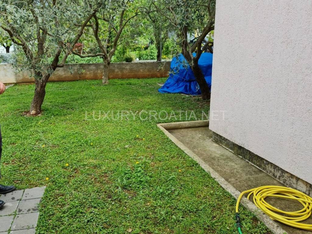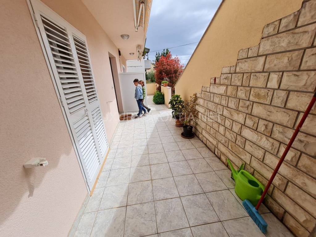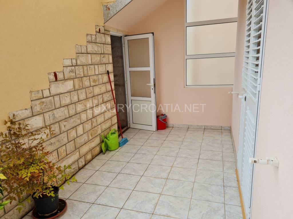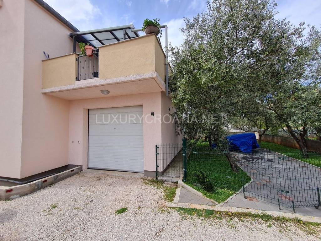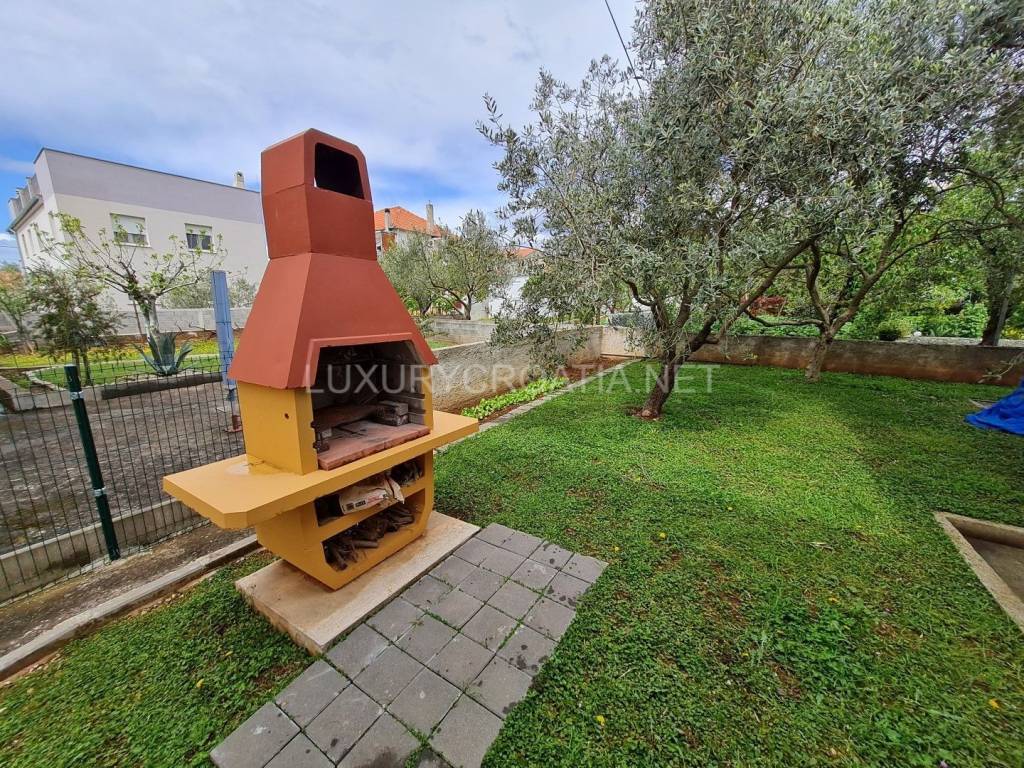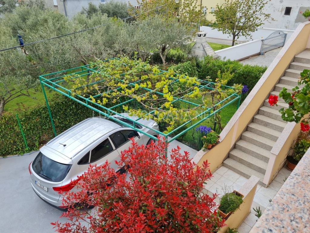 Kuća ima 4 stana, ukupne površine 260 m2 raspoređenih na 2 kata. Tu je garaža i dodatna 2 parkirna mjesta, prednji cvjetnjak i stražnji prostrani vrt s maslinama i roštiljem. Tu je i podrumski prostor koji nije uređen iznutra. Površina zemljišta je gotovo 400 m2, s pristupnim putem u suvlasništvu.
