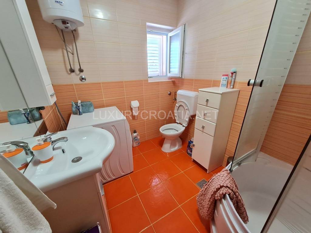 Kuća je renovirana prije 3 godine po visokim standardima kvalitete. Ima hidro i toplinsku izolaciju. Glavni stan je na prvom katu, ima klima uređaj i peć na drva. Ostala 3 stana imaju klima uređaj (koji može i grijanje i hlađenje).