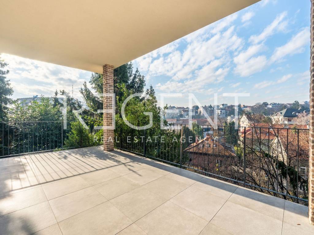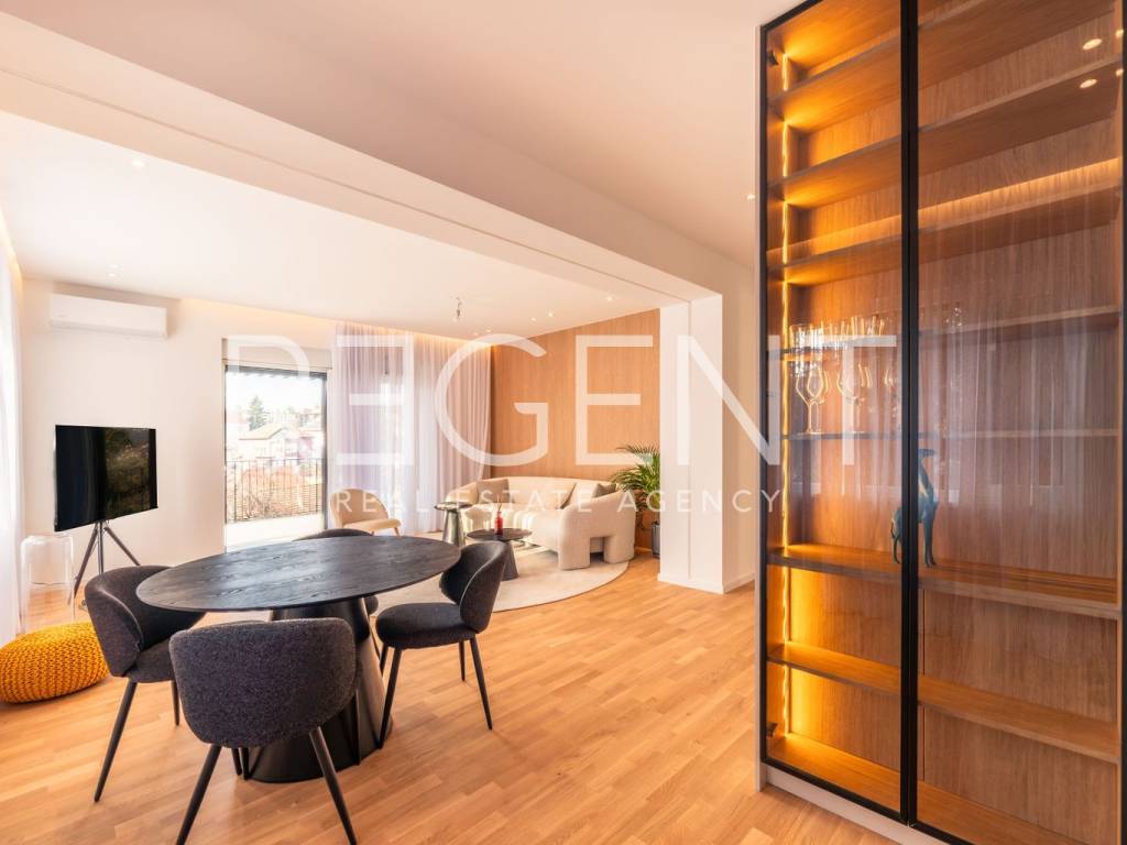 Na atraktivnoj i mirnoj lokaciji Srebrnjak prodaje se vrhunski uređen i potpuno namješten trosobni stan površine 90 m², s natkrivenom terasom (ukupno 102,57 m²). Smješten je u manjoj luksuznoj zgradi s četiri stana. Stan se sastoji od dnevnog boravka s kuhinjom i blagovaonicom, dvije spavaće sobe (jedna s vlastitom kupaonicom), dodatnog WC-a te velike terase s otvorenim pogledom na zelenilo i zapadni dio grada. Trostrana orijentacija (istok–jug–zapad) osigurava obilje prirodnog svjetla. Opremljen je podnim grijanjem, hrastovim parketom, protuprovalnim vratima i kuhinjom rađenom po mjeri s ugradbenim uređajima. Stan je odmah useljiv. Parking je javni besplatni parking u ulici. U blizini se nalaze bolnice Merkur i Vuk Vrhovac, javni prijevoz, škole, vrtići i trgovine. Autobusna stanica udaljena je 110 m, jednu stanicu od Kvaternikovog trga. Za sva ostala pitanja slobodno nas kontaktirajte.