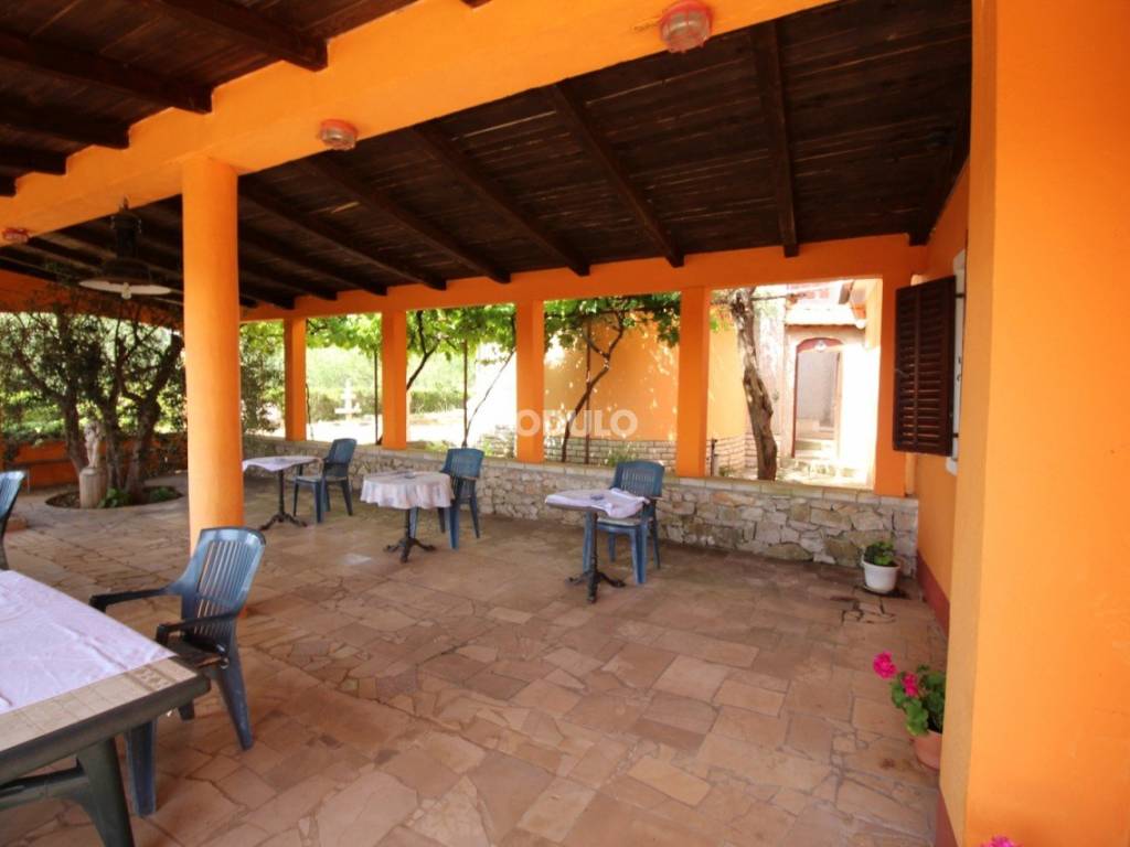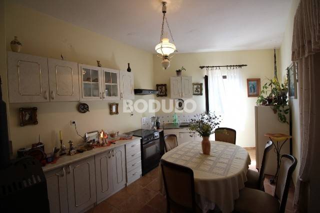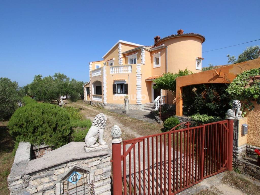 Miris mediteranskog zelenila, idiličan brežuljkasti krajolik povrh Preka, okružen maslinicima i divan pogled na more, otok Ošljak, Zadar i Velebit daju ovoj nekretnini posebnu draž. Kuća ukupne površine 220 m2 smještena je na parceli od 1300 m2. Podjeljena je na dva apartmana sa odvojenim ulazima od kojh svaki ima po dvije spavaće sobe, dnevni boravak sa kuhinjom i blagovaonicom sa terasama i kupaonicom. Gornji apartman površine 120 m2 ima već spomenuti predivan pogled prema Preku i Zadru, a kako je orjentiran sjeverozapadno, neizbježan je zalazak sunca u ovom lijepom okruženju. Donji apartman je također konforan, a površine je 100 m2. Pomoćni objekt od 67 m2 koji se nalazi u produžetku kuće služio je nekada u ugostiteljske svrhe, također to može biti i danas ili se može prenamjeniti u još jedan stanbeni objekt u privatne svrhe. Također je tu i objekt površine 72 m2 i konoba od 14 m2. Ostatak okućnice od cca 1000 m2 ukrašen je zelenilom maslina, loze i mediteranskog raslinja idealan je za ugradnju bazena.