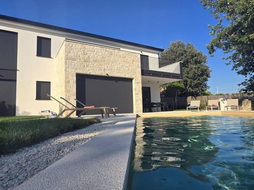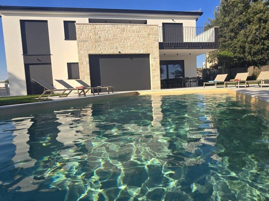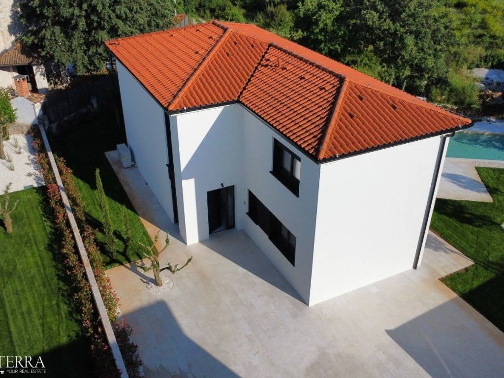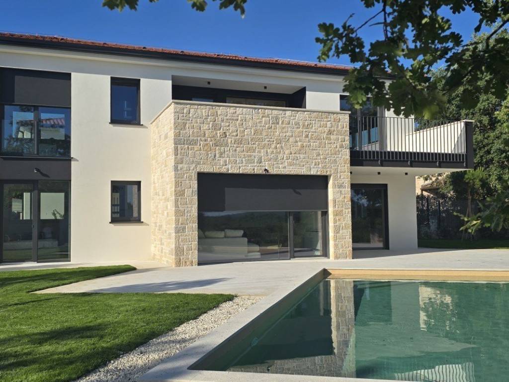 Na prodaju je luksuzna moderna vila vrhunske gradnje koja se ističe besprijekornom kvalitetom materijala i pažnjom posvećenom svakom detalju. Svi prozori i vrata izrađeni su od drvo/aluminija renomiranog slovenskog proizvođača M-SORA, čiji se proizvodi koriste na zahtjevnim njemačkim i austrijskim tržištima.