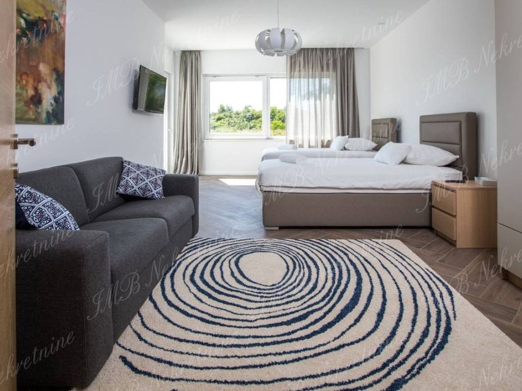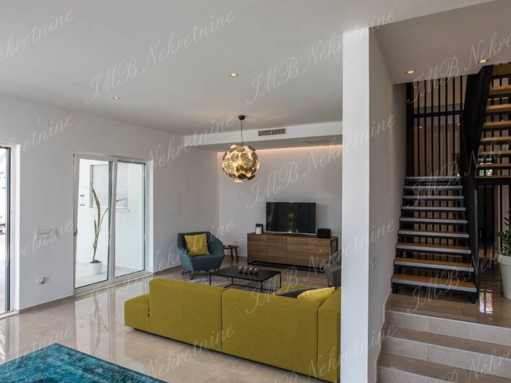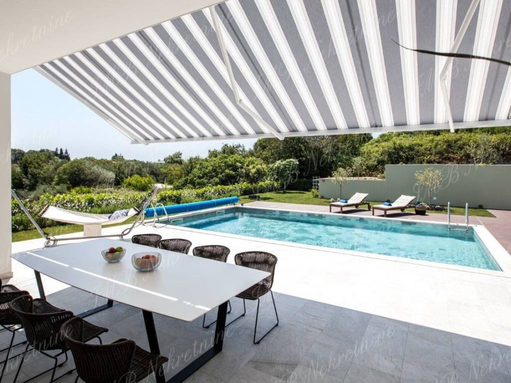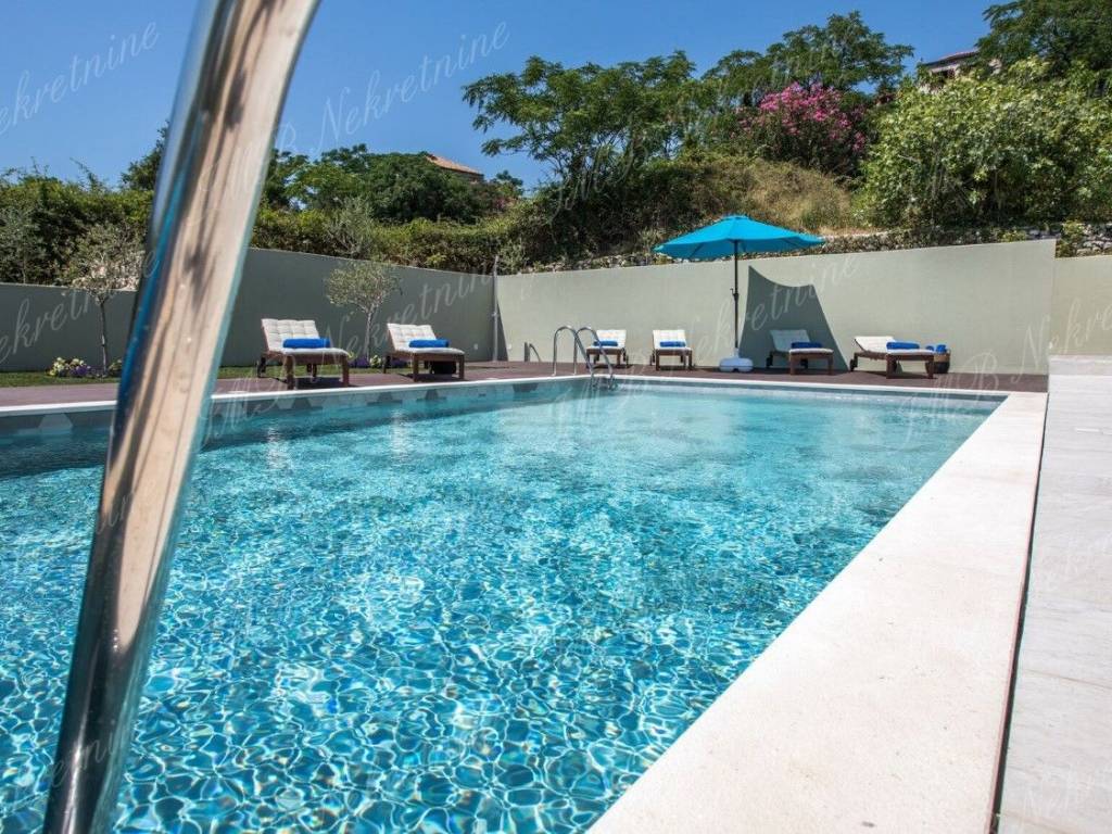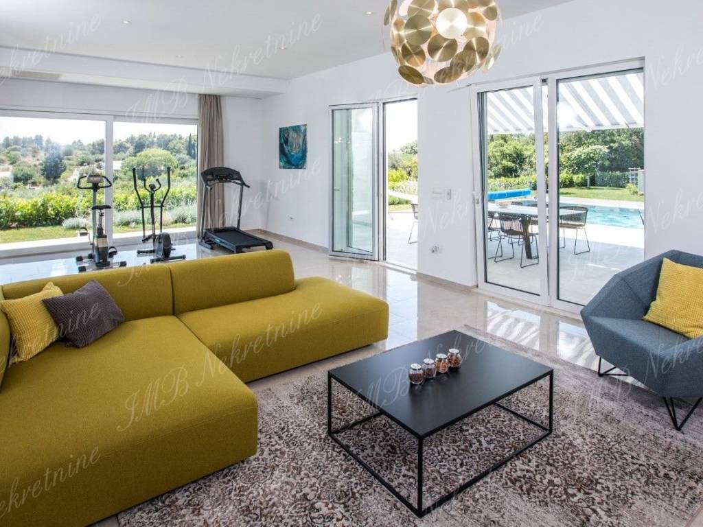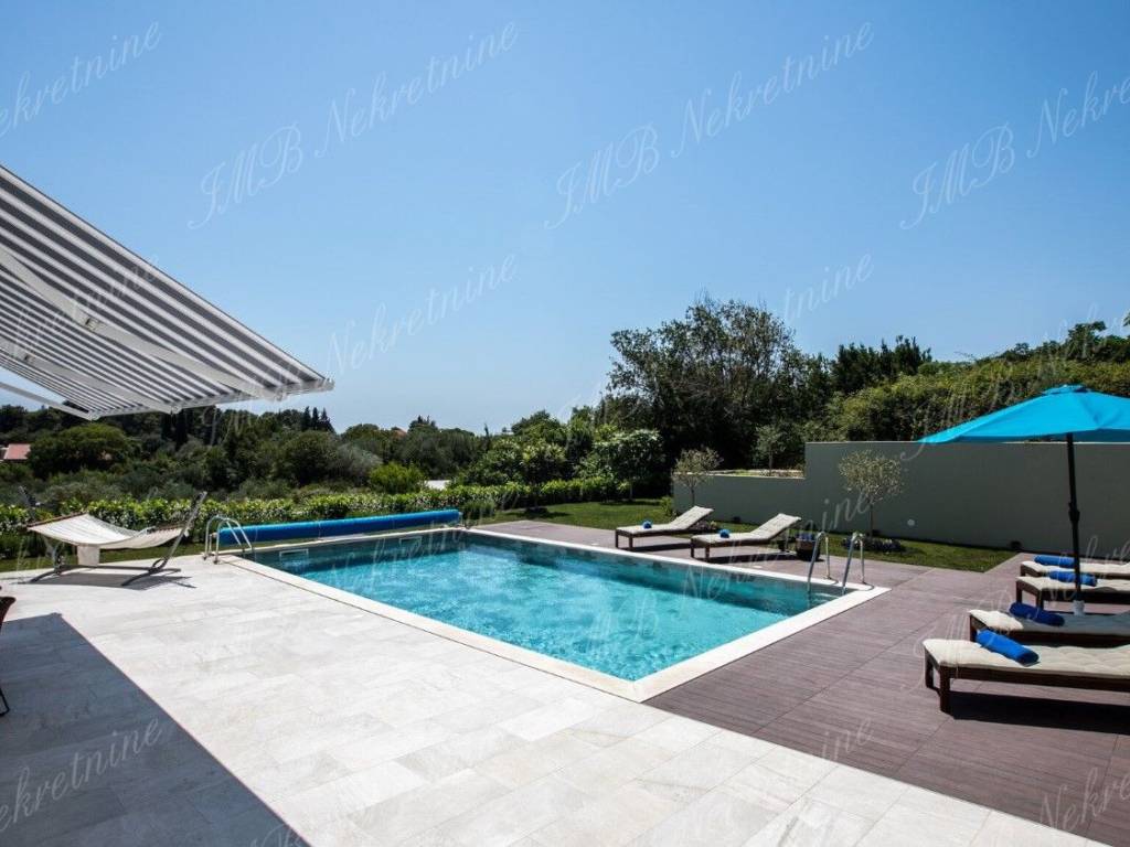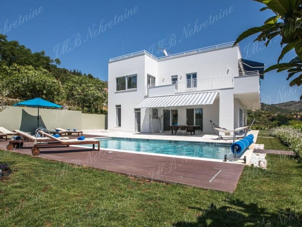 Vila je okružena maslinicima i stablima naranača. Vinogradi u blizini, stabla mijendula i lovora... mirisno mediteransko bilje čiji opojan miris prodire u unutrašnjost vile. Zelenilo koje upijate pogledom potiče Vas na zahvaljivanje... zahvaljivanje na predivnoj čistoj prirodi koja je dar od Boga! Ova pomno arhitektonski projektirana luksuzna vila ima stambenu površinu 479 m2, a smještena je na prostranoj parceli od 959 m2.Vila se proteže na dvije etaže.Prekrasan relaksirajući vanjski prostor prizemlja vile obogaćen je bazenom, lijepo uređenom terasom i vrtom iz kojeg se ulazi u vanjsku kuhinju. Unutrašnji dio prizemlja vile se sastoji od komfornog dnevnog boravka, velike kuhinje s blagovaonicom, kupaonice i praone.Gornja etaža ima četiri spavaće sobe s kupaonicama i lijepu romantičnu terasu koja zaokružuje cijelu vilu.Čitavi kompleks predstavlja spoj modernog ekskluzivnog prostora nadasve kvalitetne gradnje, s jedinstvenim ruralnim okruženjem ribarskog mjesta udaljenog od Starog grada svega pet minuta vožnje automobilom. Prekrasne obližnje plaže, izvrsni restorani s prioritetno morskim delicijama, te ostali sadržaji od vile su udaljeni dvije - tri minute vožnje.Više informacija o ovoj luksuznoj vili u uredima IMB Nekretnine d.o.o.