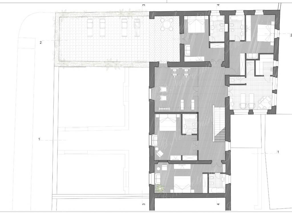 Ukupna površina nakon planiranog uređenja iznosila bi cca 655 m2 na tri etaže prizemlje, kat i potkrovlje.