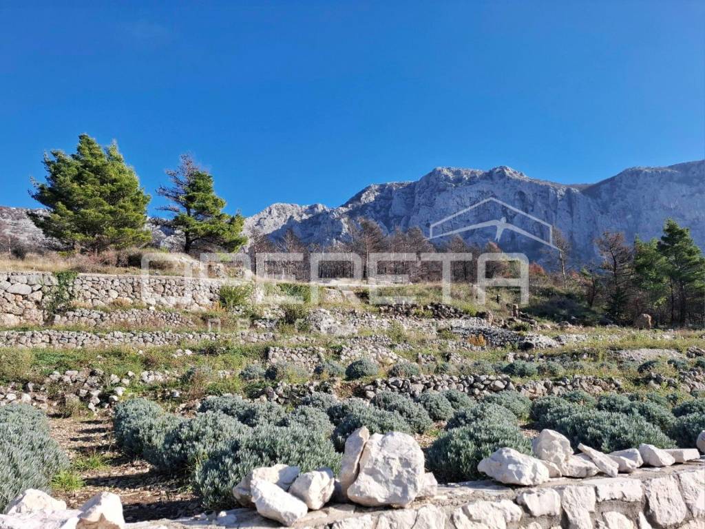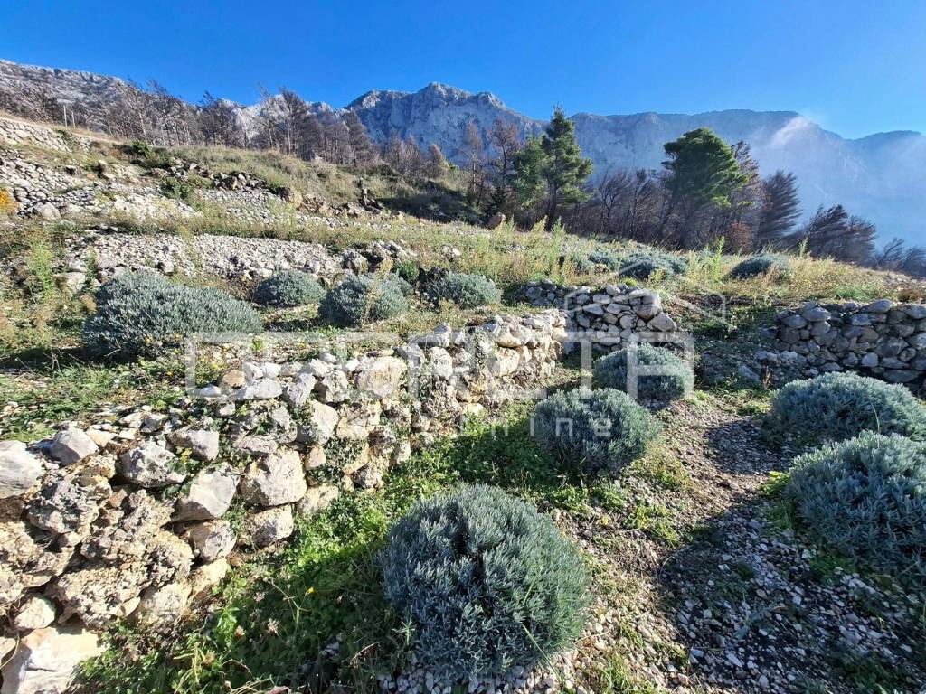 Ovaj mali dragulj smješten je iznad magistrale na 1,7km zračne udaljenosti od mora nudi očaravajući pogled na more, otoke i cijelu Podgoru. Parcela je poljoprivredna, bez mogućnosti gradnje i bez izravnog pristupnog puta, no upravo ta izdvojenost jamči mir i potpunu privatnost.