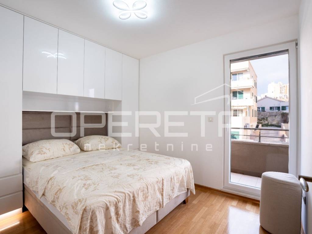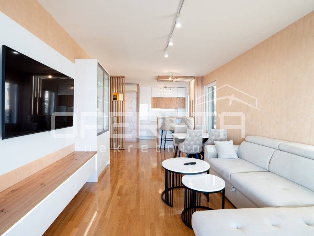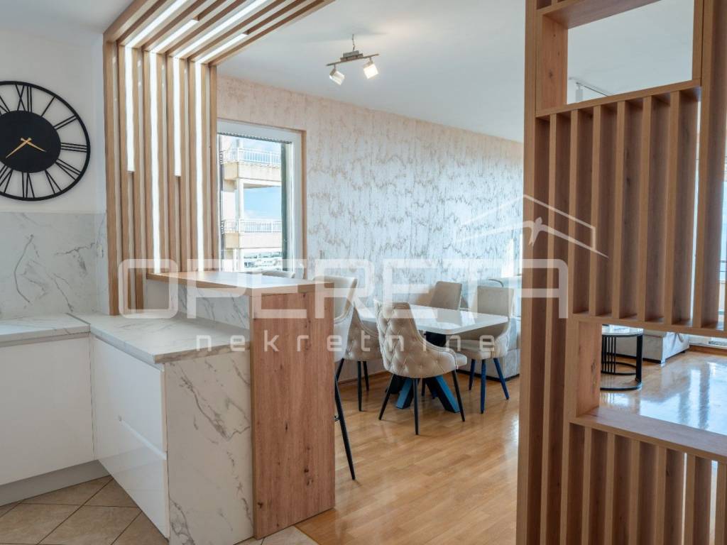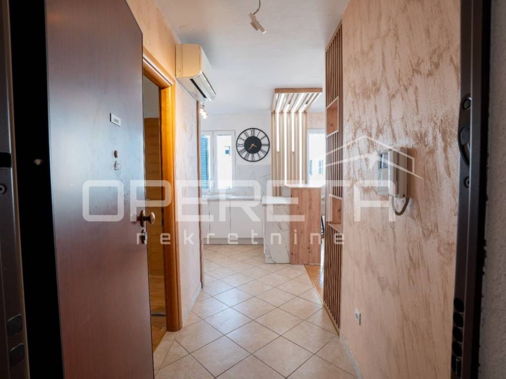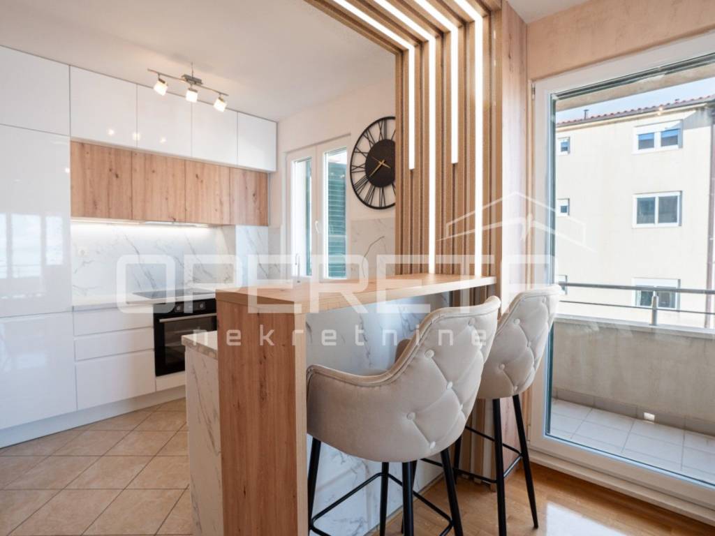 Stan je potpuno renoviran i novo opremljen, a nakon završetka radova u njemu nitko nije živio, tako da ulaskom u stan stječete dojam potpuno novog stana. Svi uređaji su potpuno novi i nikada korišteni, uključujući i perilicu rublja koja je još zapakirana. Cijeli stan je klimatiziran obe spavaće sobe i dnevni boravak imaju svoje klima jedinice. Kupaonica je moderno i potpuno opremljena, a kuhinja dolazi s kompletnim aparatima i visokokvalitetnim namještajem izrađenim po mjeri.