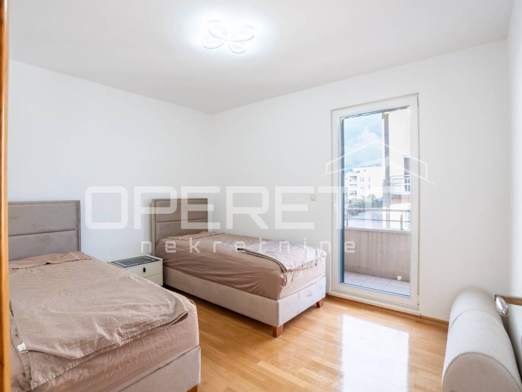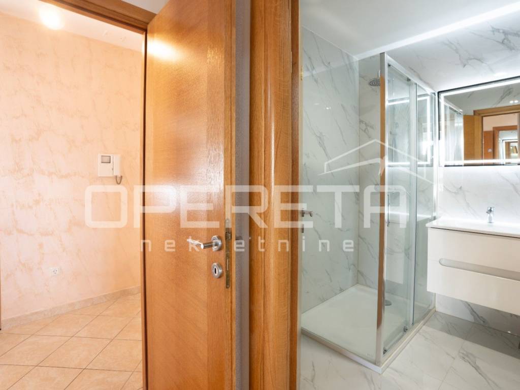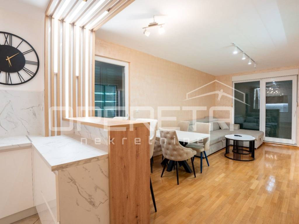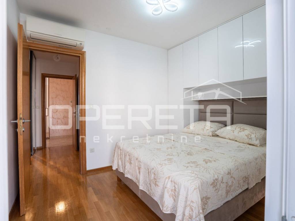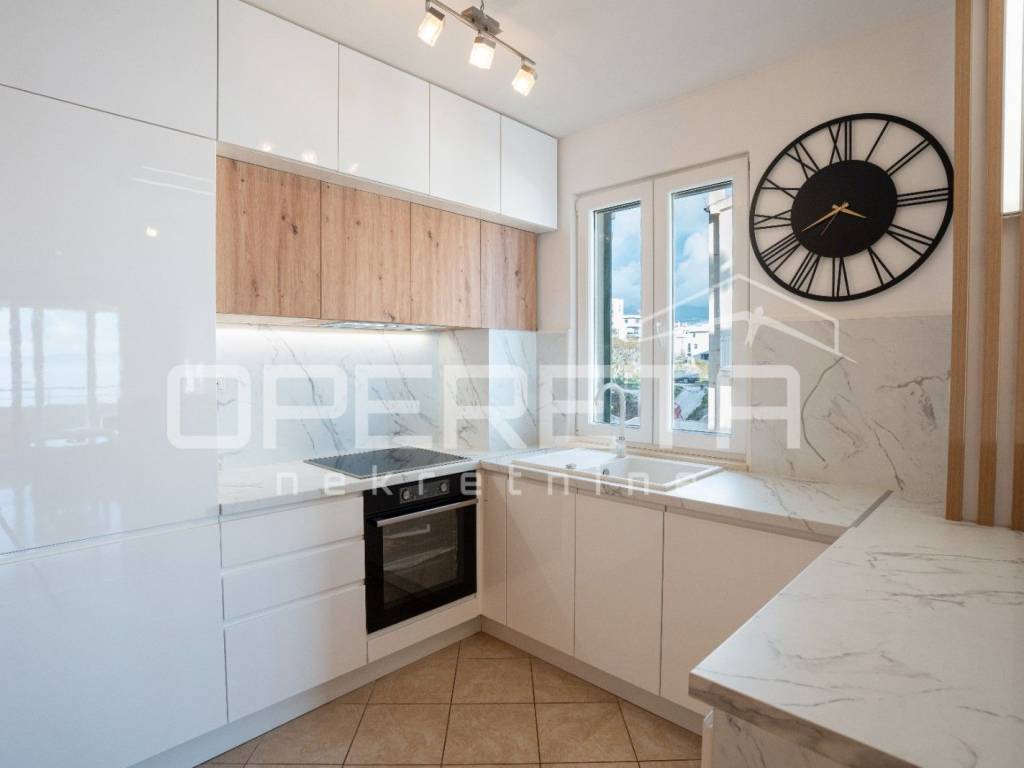 Stan je potpuno renoviran i novo opremljen, a nakon završetka radova u njemu nitko nije živio, tako da ulaskom u stan stječete dojam potpuno novog stana. Svi uređaji su potpuno novi i nikada korišteni, uključujući i perilicu rublja koja je još zapakirana. Cijeli stan je klimatiziran obe spavaće sobe i dnevni boravak imaju svoje klima jedinice. Kupaonica je moderno i potpuno opremljena, a kuhinja dolazi s kompletnim aparatima i visokokvalitetnim namještajem izrađenim po mjeri.