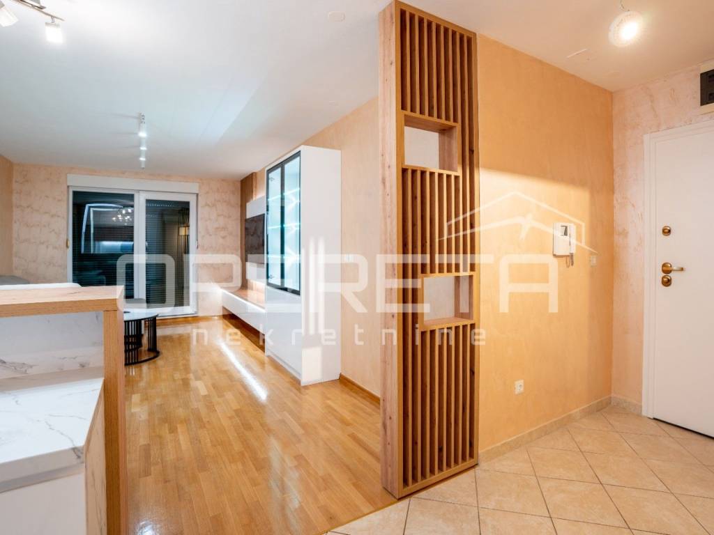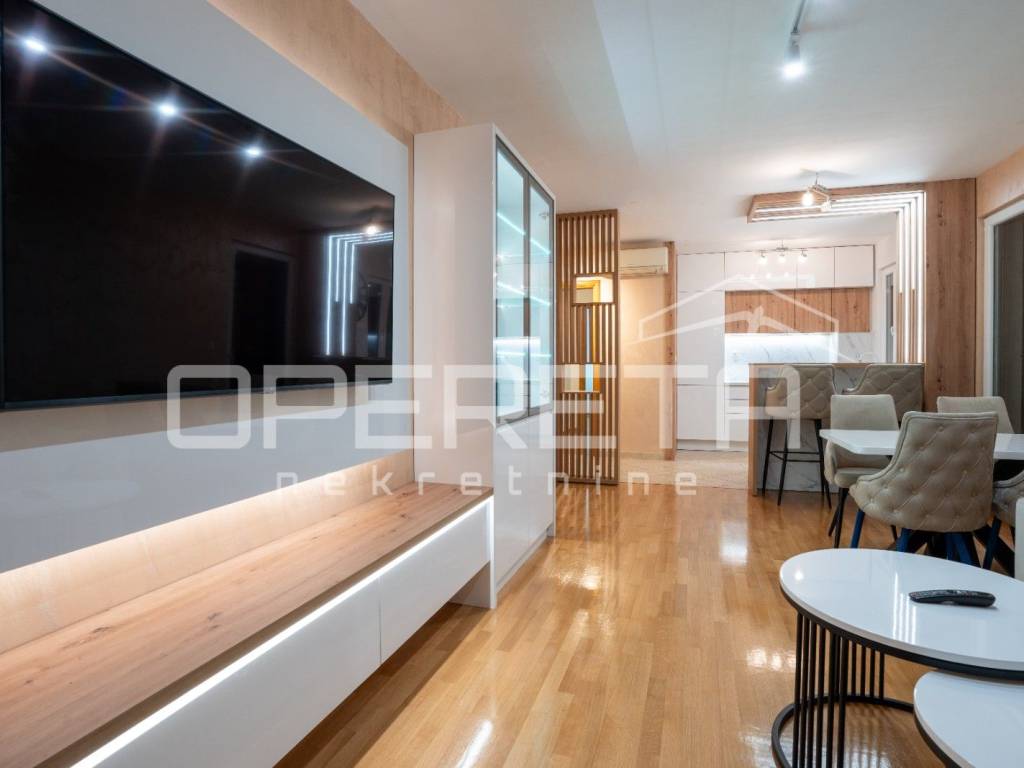 U mirnom i atraktivnom dijelu Žnjana, na drugom katu moderne stambene zgrade s četiri kata, prodaje se luksuzan i funkcionalan dvosoban stan vrhunskog uređenja i savršenog tlocrta. Stan je trostrano orijentiran jug, istok i sjever što mu osigurava obilje prirodnog svjetla tijekom cijelog dana i izvanrednu prozračnost.