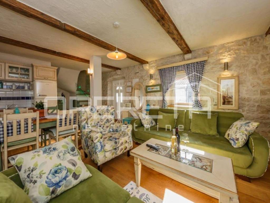 U samom srcu Kaštel Novog, svega pedeset metara do mora i šetnice, nalazi se potpuno renoviran dvoetažni stan koji spaja autentični dalmatinski ugođaj i suvremenu udobnost. Smješten u kamenoj kući s tradicionalnim mediteranskim karakterom, ovaj stan pruža idealan spoj povijesnog šarma i modernog načina života.