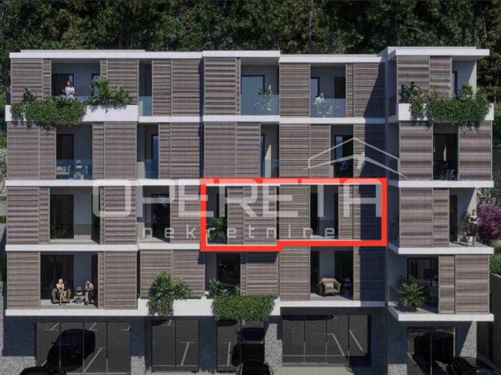 Tlocrt je promišljen i funkcionalan. Neto korisna površina iznosi 68,40 m. Ulaz vodi u svijetlu dnevnu zonu otvorenog koncepta u kojoj se kuhinja, blagovaonica i dnevni boravak logično nadovezuju i orijentirani su prema zapadu i jugu, što osigurava obilje prirodnog svjetla. Dvije komforne spavaće sobe smještene su u mirnijem dijelu stana, a raspored kupaonice i dodatnog toaleta podiže svakodnevnu funkcionalnost i privatnost.