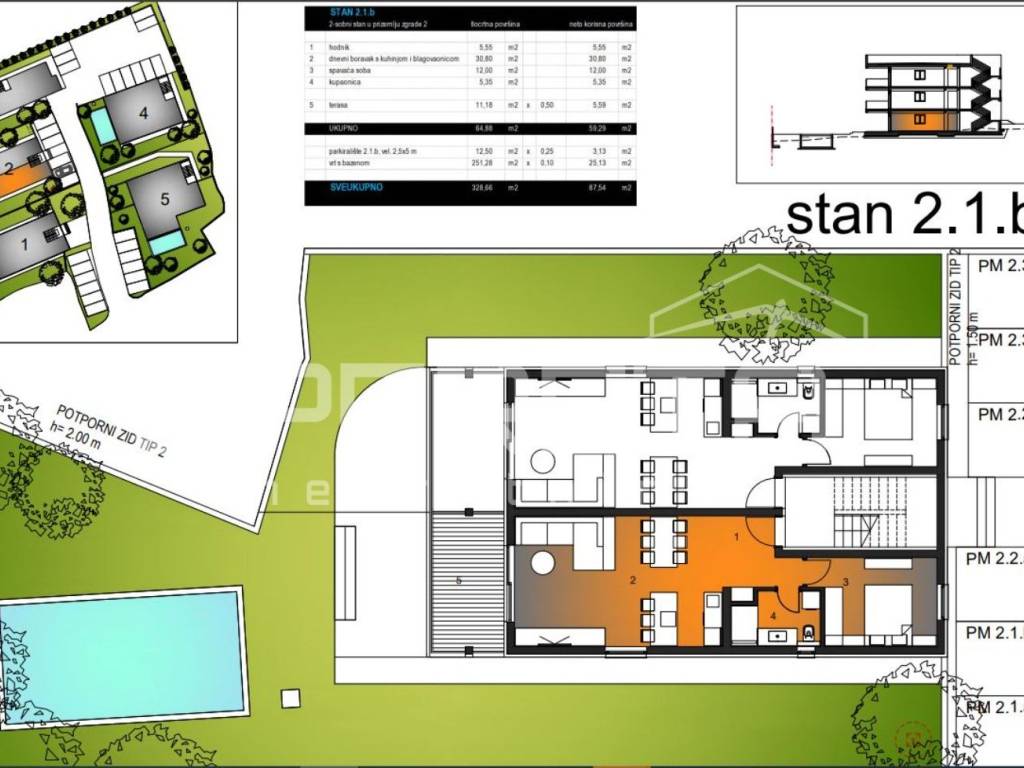 Ovaj stan 2.1b se smjestio na prvoj etaži odnosno u prizemlju vile 2.
