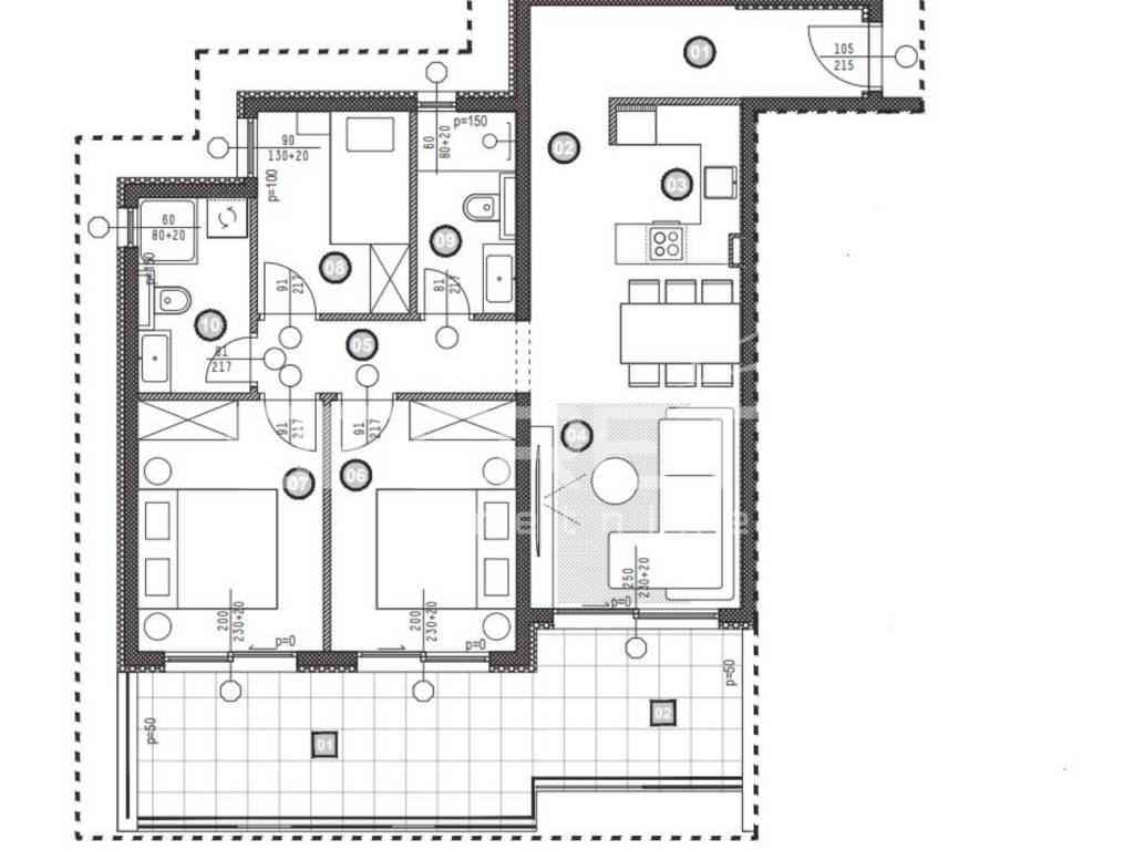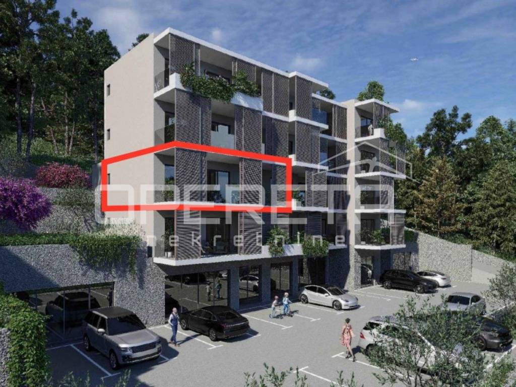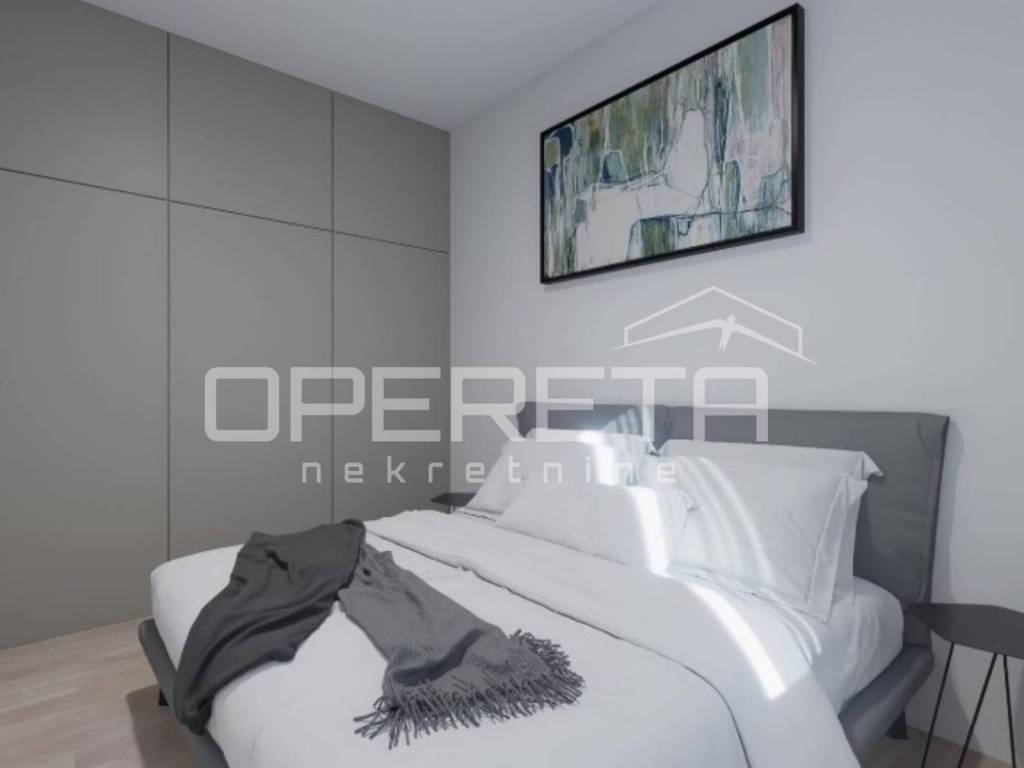 Tlocrt je promišljen i funkcionalan. Neto korisna površina stana iznosi 83,53 m, čineći ga najvećim stanom na katu s tri stana. Ulaz vodi u svijetlu dnevnu zonu otvorenog koncepta u kojoj se kuhinja, blagovaonica i dnevni boravak logično nadovezuju i orijentirani su prema zapadu i jugu, što osigurava obilje prirodnog svjetla. Dvije komforne spavaće sobe smještene su u mirnijem dijelu stana, dok raspored kupaonica (stan ima dvije kupaonice s WC-om) podiže svakodnevnu funkcionalnost i privatnost.