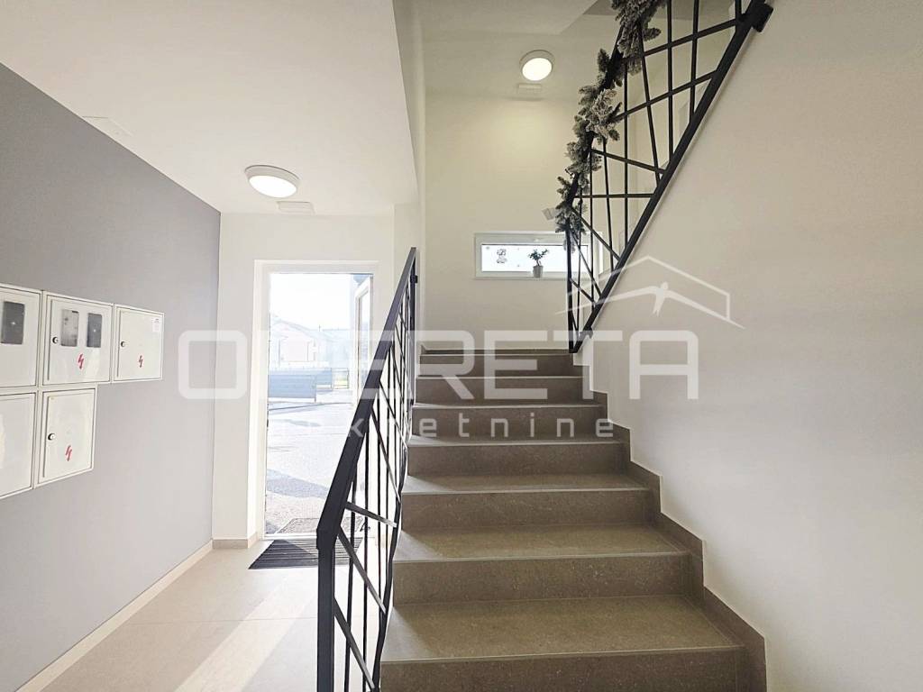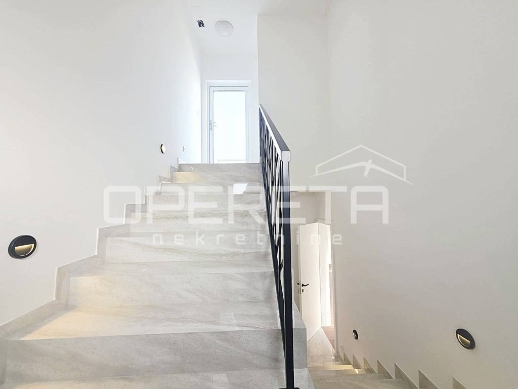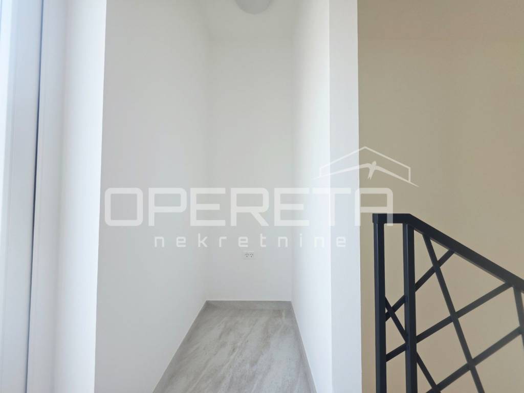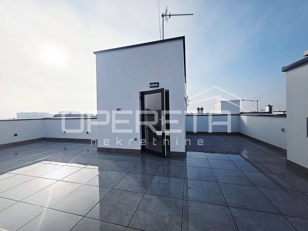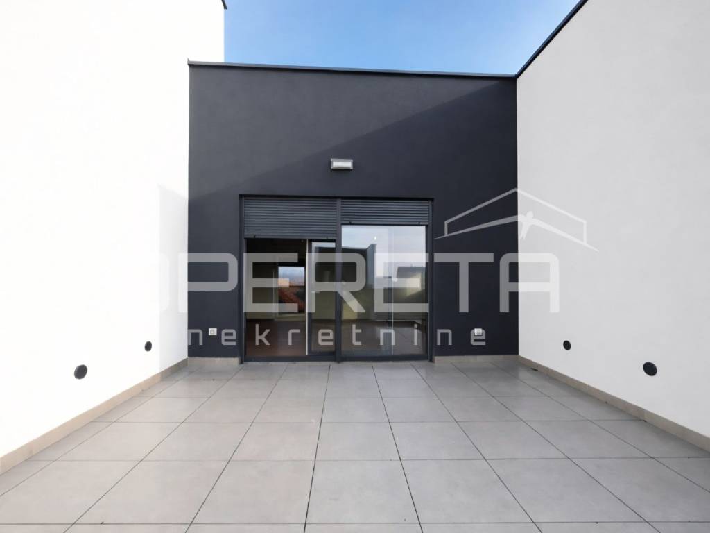 PRODAJA, PENTHOUSE, SESVETE, 100m2, NOVOGRADNJA, 3-soban. Stan ima 73m2 zatvorenog prostora koji se sastoji od hodnika, dnevnog boravka sa kuhinjom I blagovaonicom koji zajedno čine veliki open space, dvije spavaće sobe, kupaonice s WC-om. U ukupnu kvadraturu stana su po koeficijentima obračunati 2 terase na razini stana, krovna terasa te 2 vanjska parkirna mjesta. Na obje terase je u zidovima ispod fasade napravljena priprema za pergolu, a na krovnoj terasi je napravljena priprema za roštilj i provedena je voda. Nekretnina je potpuno nova te kupci postaju prvi vlasnici. Oprema: PVC vanjska stolarija s električno podizačima i antracit roletama, troslojno staklo, plinsko etažno podno grijanje, prvoklasna keramika i troslojni hrastov parket, klima uređaj, Home sustav pametnog stana, vanjski i nosivi zidovi armirano betonski 18-25 cm, unutarnje stubište je armirano-betonsko, hidrofobna žbuka, krovište s HI i TI izolacijom.... Stan glasi na firmu pa Kupac ne plaća 3% porez na promet nekretninama. Zgrada je etažirana sa ishođenom uporabnom dozvolom te odmah useljiva. Svi sadržaji potrebni za ugodan urbani život su u blizini: trgovina, supermarket, škola, park, ljekarna, vrtić, autobus, restorani, kafići, igrališta...Idealna nekretnina za one koji traže spoj komfora, kvalitete i privatnosti u modernom urbanom okruženju sa puno otvorenog prostora na jako mirnoj lokaciji. PREPORUČUJEMO!