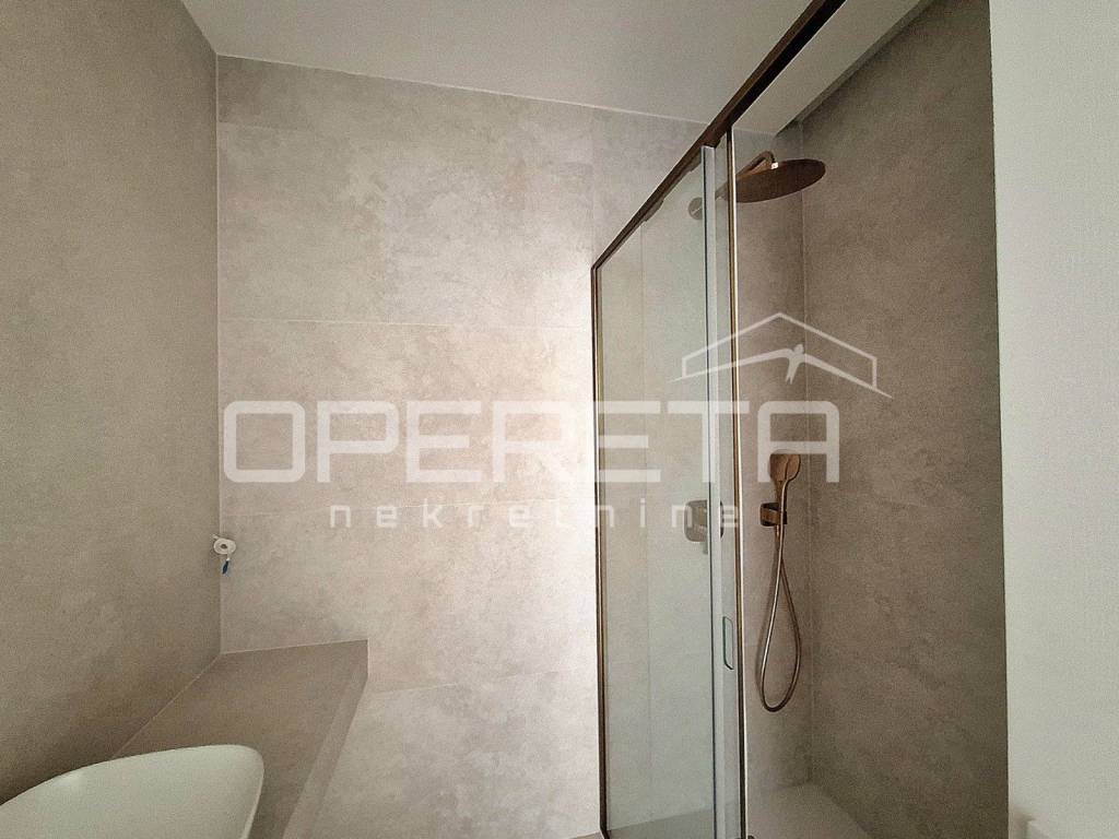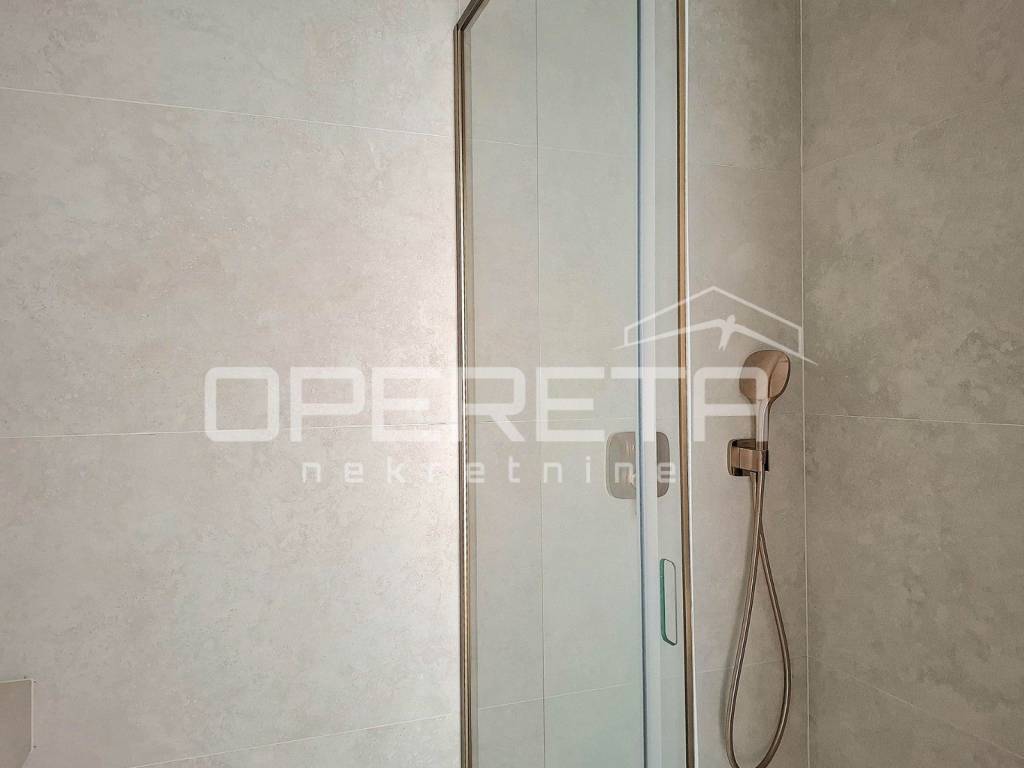 Kupaonice su obložene velikim porculanskim pločicama renomiranih proizvođača, s HANSGROHE brončanim armaturama, INDA staklenim kliznim stijenkama, akrilnim kadama od lijevanog kamena i podnim grijanjem na cijeloj površini, uključujući i prostor ispod kada i tuševa.
