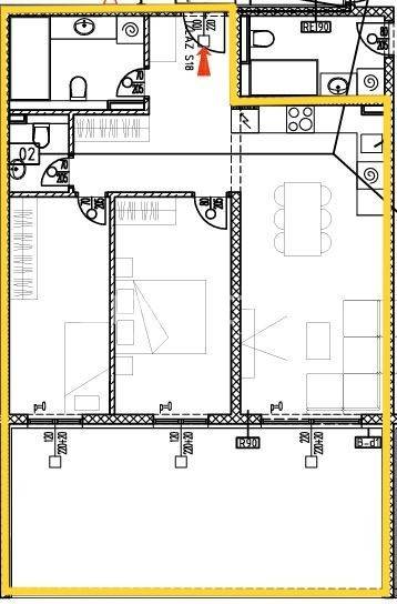 Stan S18 se nalazi na 1. katu zgrade s ukupno 28 jedinica, stambene površine 91,80m2 i ukupne obračunske površine 84,31m2. Sastoji se od: hodnika, kuhinje+blagavaonica+dnevni boravak, 2 spavaće sobe, kupaonice i prostrane lođe od 29,97m2 (koef. 0,75=22,48m2).
