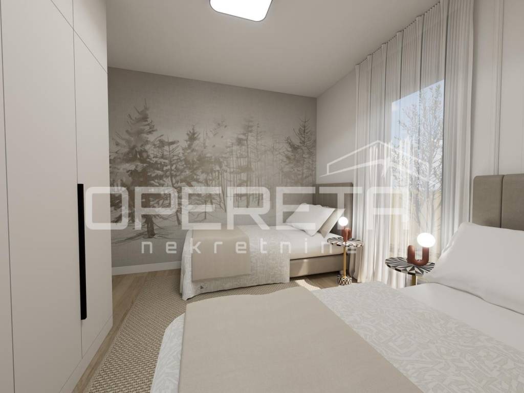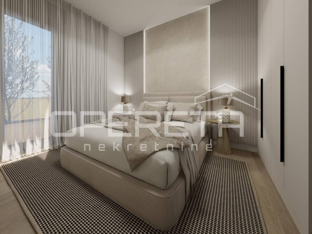Sanitarna oprema dolazi od renomiranih proizvođača. Ugrađeni su vodokotlići GEBERIT. U dnevnom boravku predviđen je multisplit klima uređaj, dok je u spavaćim sobama priprema za dodatne klima jedinice. Stan ima video portafon za veću sigurnost. Osigurana je priprema za TV i internet instalacije. U kupaonicama je predviđeno podno grijanje. Okoliš zgrade bit će hortikulturno uređen, s vanjskom rasvjetom i uređenim prilazom. Vanjsko parkirno mjesto dostupno je uz nadoplatu od 15.000 . KUPNJA NEKRETNINE MOGUĆA PUTEM KREDITA!
