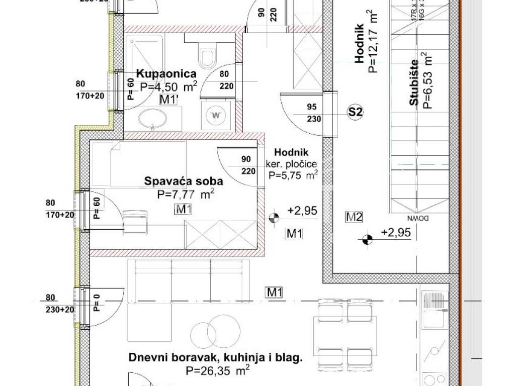 U mirnom i sve traženijem dijelu Podstrane, u neposrednoj blizini mora i uređenih plaža, gradi se moderna stambena zgrada suvremene arhitekture u kojoj se nalazi ovaj elegantan stan na prvom katu. Stan ima ukupnu površinu od 61,48 m i osmišljen je tako da svaki kvadrat pruža maksimalnu funkcionalnost i udobnost. Raspored prostorija je logičan i praktičan te omogućuje jednostavan i ugodan svakodnevni život. Ulazni dio vodi prema otvorenom dnevnom prostoru koji objedinjuje kuhinju, blagovaonicu i boravak. Prostor je prozračan i ispunjen prirodnim svjetlom tijekom cijelog dana. Velike staklene stijene dodatno naglašavaju osjećaj širine i povezanosti s vanjskim prostorom. Iz dnevnog boravka izlazi se na balkon. S balkona se pruža lijep pogled na more i okolni krajolik. Jutra ovdje započinju uz svjež morski zrak i tišinu mediteranskog okruženja. Spavaća soba osigurava mir i privatnost potrebnu za kvalitetan odmor. Kupaonica je moderno projektirana i funkcionalna. Svaki detalj stana prilagođen je suvremenom načinu stanovanja.