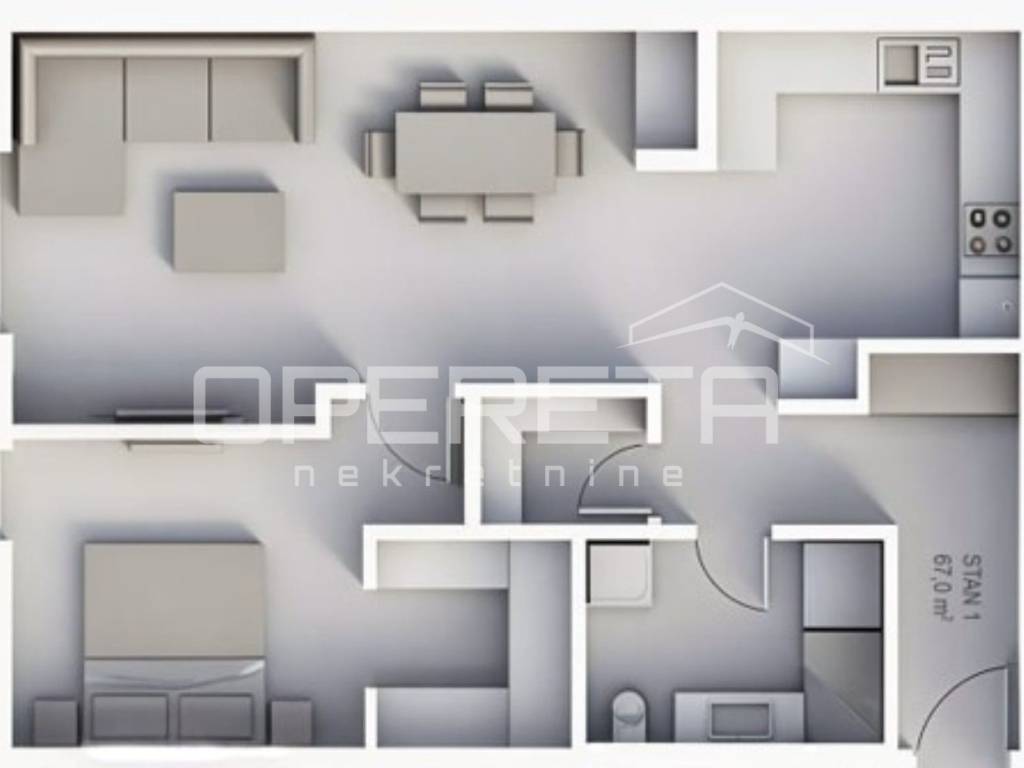 Stan oznake S1 nalazi se u razizemlju stambene zgrade u izgradnji od ukupno 3 kata. Sastoji se od velikog "open space" dnevnog boravka s kuhinjom i blagovaonicom, spavaće/radne sobe, kupaonice s wc-om, zasebne garderobe, spremišta i hodnika.