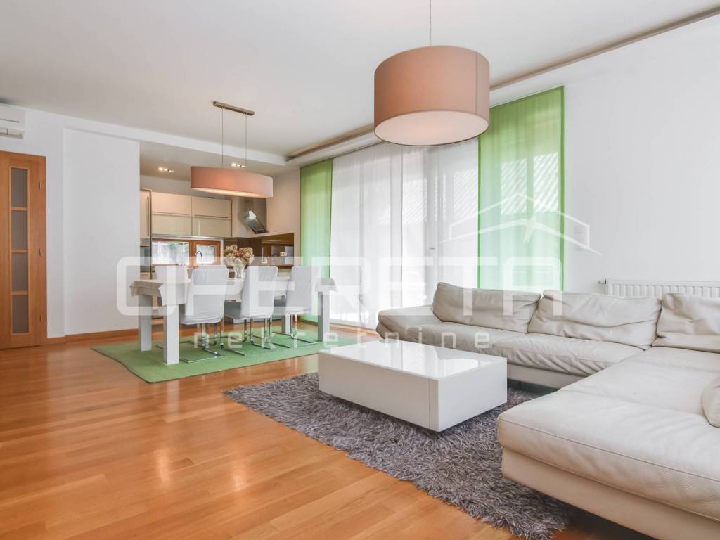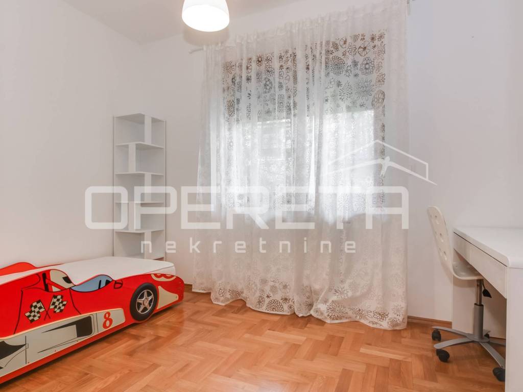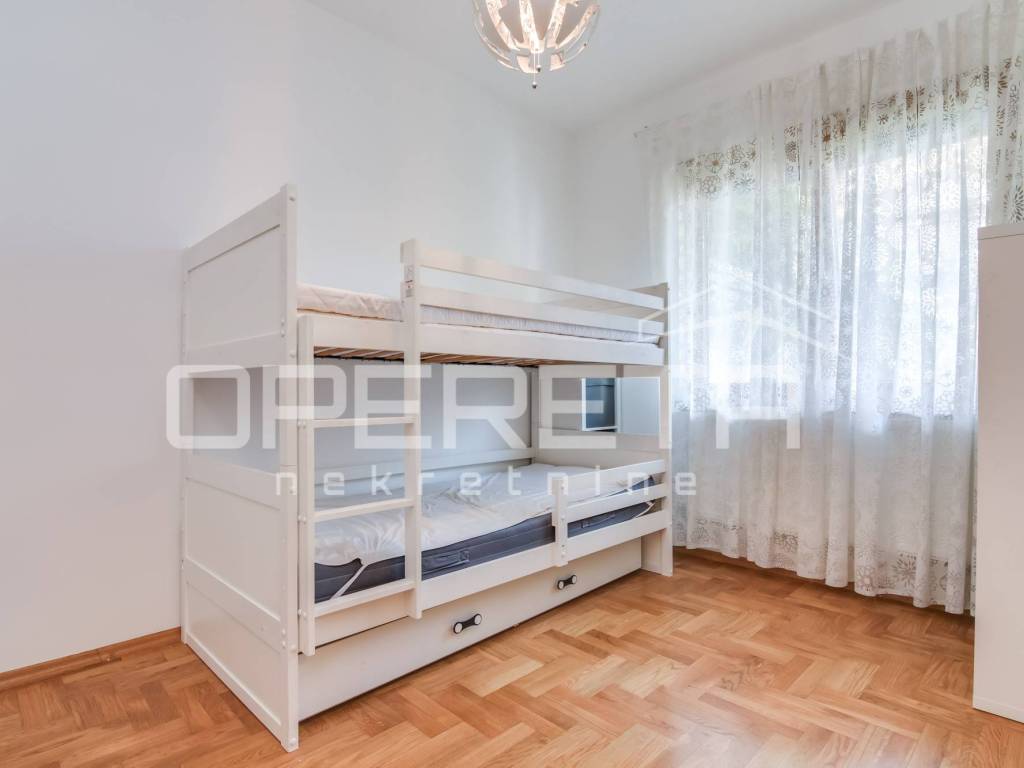 STAN ZA NAJAM, ZAGREB, GRAČANI, GRAČANSKA CESTA U najam se daje 4- sobni stan u visokom prizemlju u manjoj zgradi sa 2 parkirna mjesta u dvorištu. Stan se sastoji od: ulaznog dijela, prostranog dnevnog boravka sa blagovaonicom i kuhinjom koji ima izlaz na terasu i vrt od cca 50 m, dvije kupaonice sa sanitarnim čvorom, vešeraja, dvije manje sobe i jedne veće koja ima izlaz na terasu od 15 ak m2. Stan je kompletno opremljen, klimatiziran u neposrednoj blizini gradskog prijevoza i svih bitnih sadržaja za lagodan svakodnevni život. Dostupan je odmah!