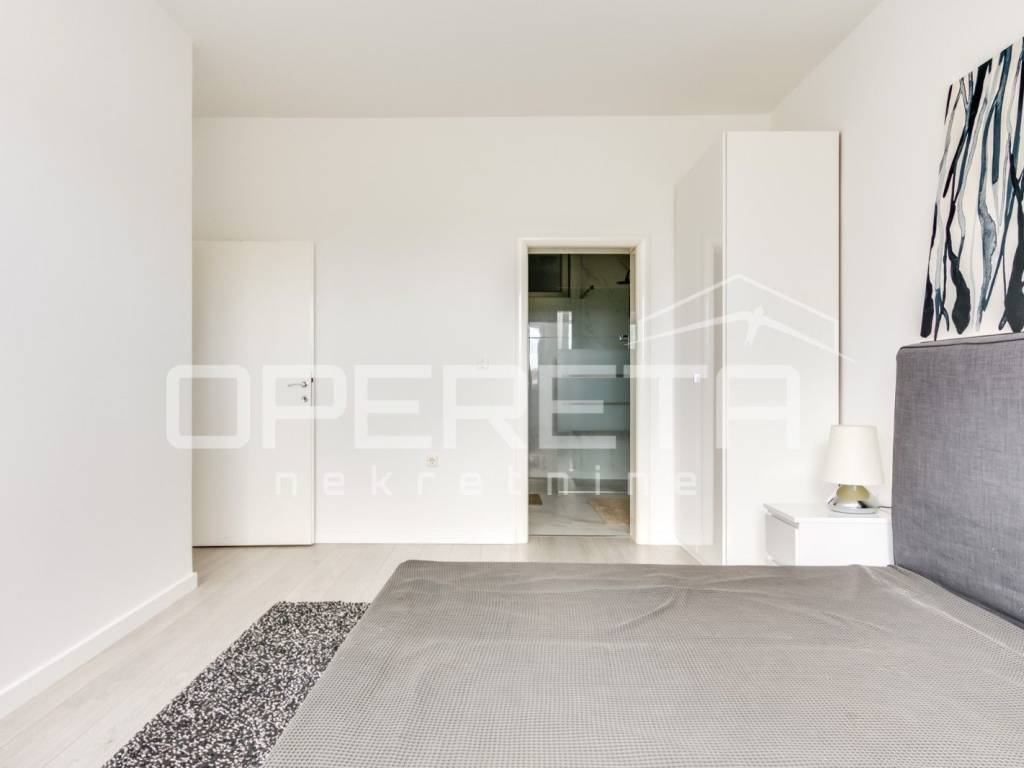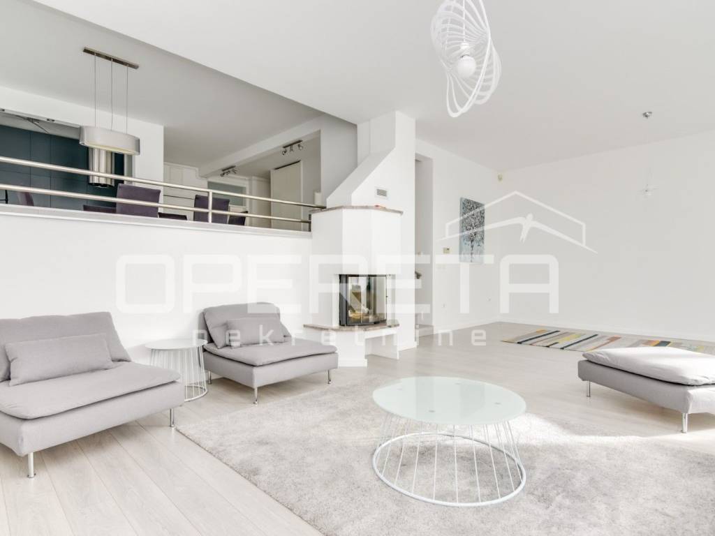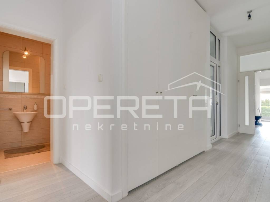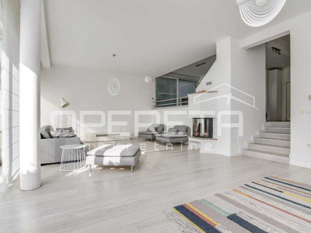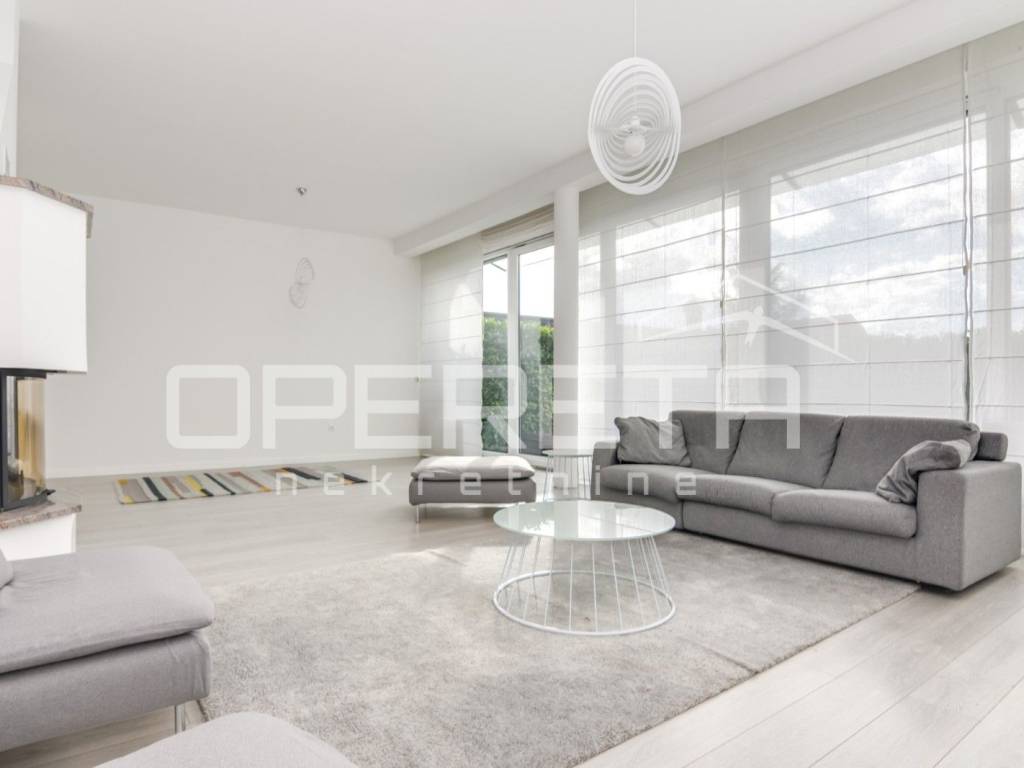 Stan se sastoji od otvorenog prostora kuhinje s blagovaonicom i dnevnim boravkom iz kojeg se izlazi na terasu, gostinjskog wc-a, garderobe, radne sobe, 3 spavaće sobe i 2 kupaonice.