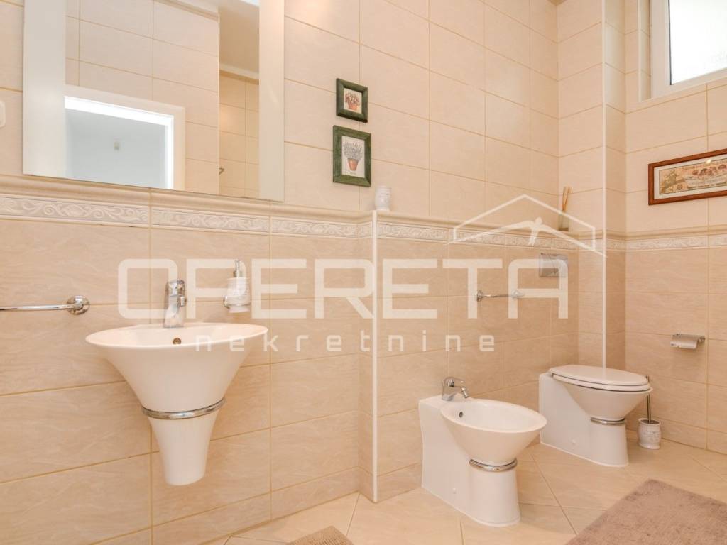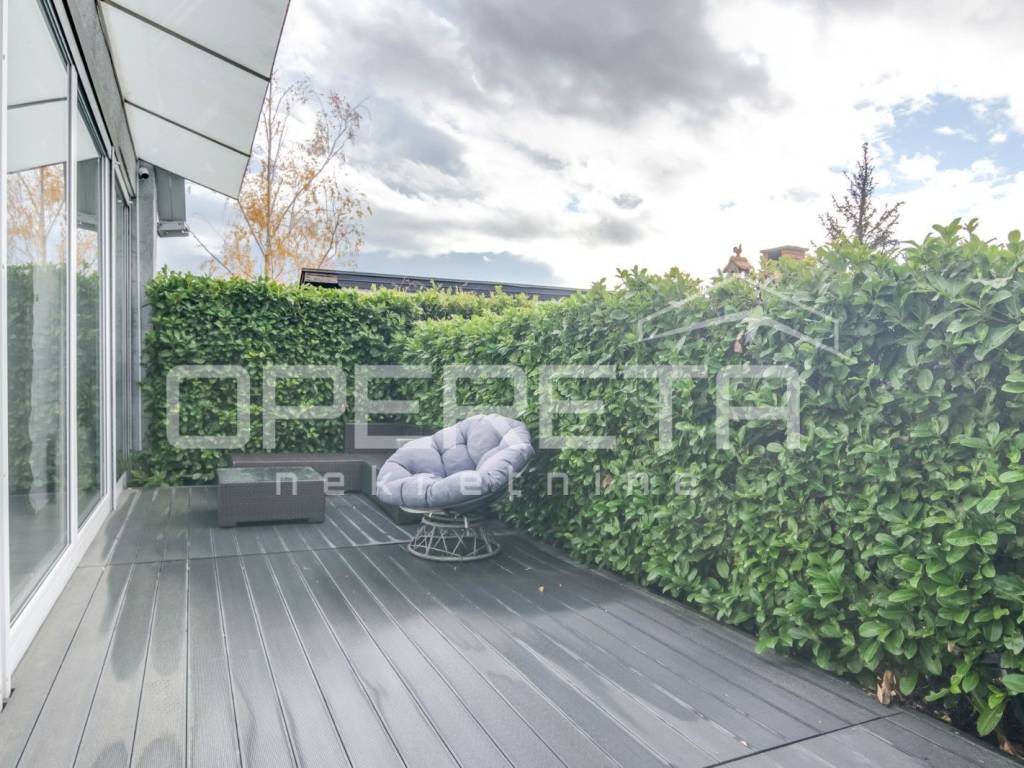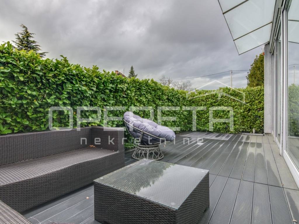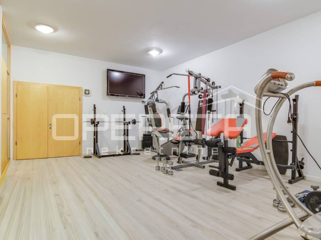 Prostrani vrt s roštiljom, vanjski bazen, sauna, teretana su na zejdničko korištenje stanarima zgrade, svukupno su 3 stana.