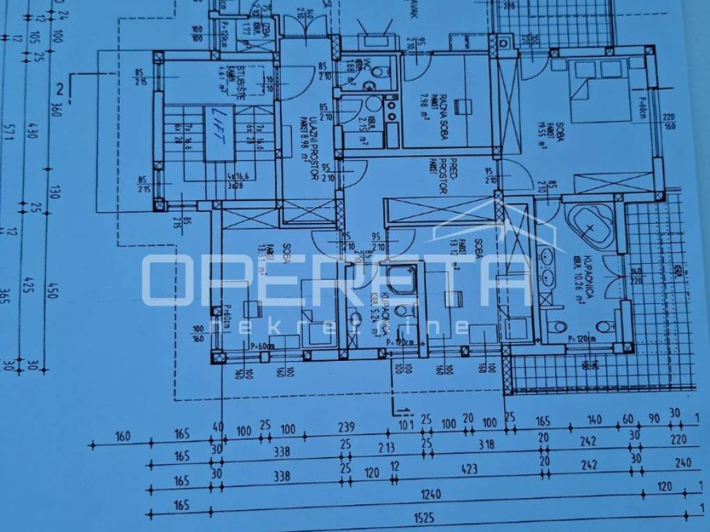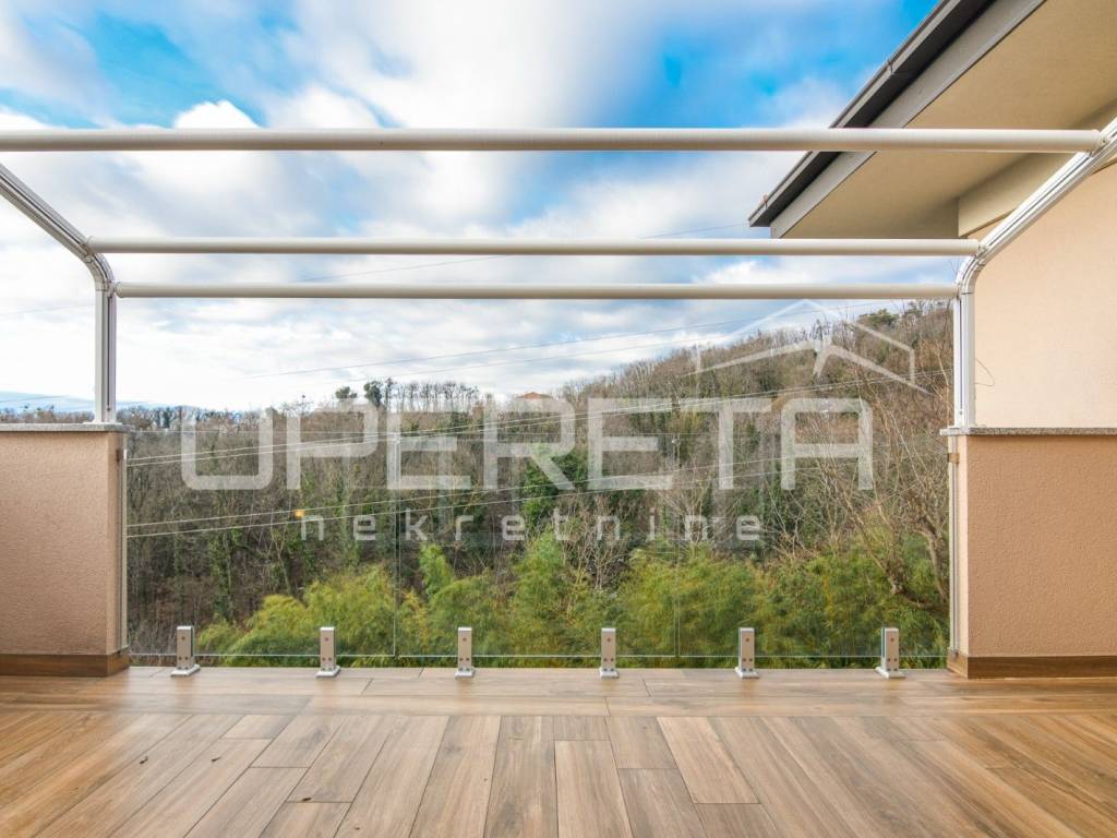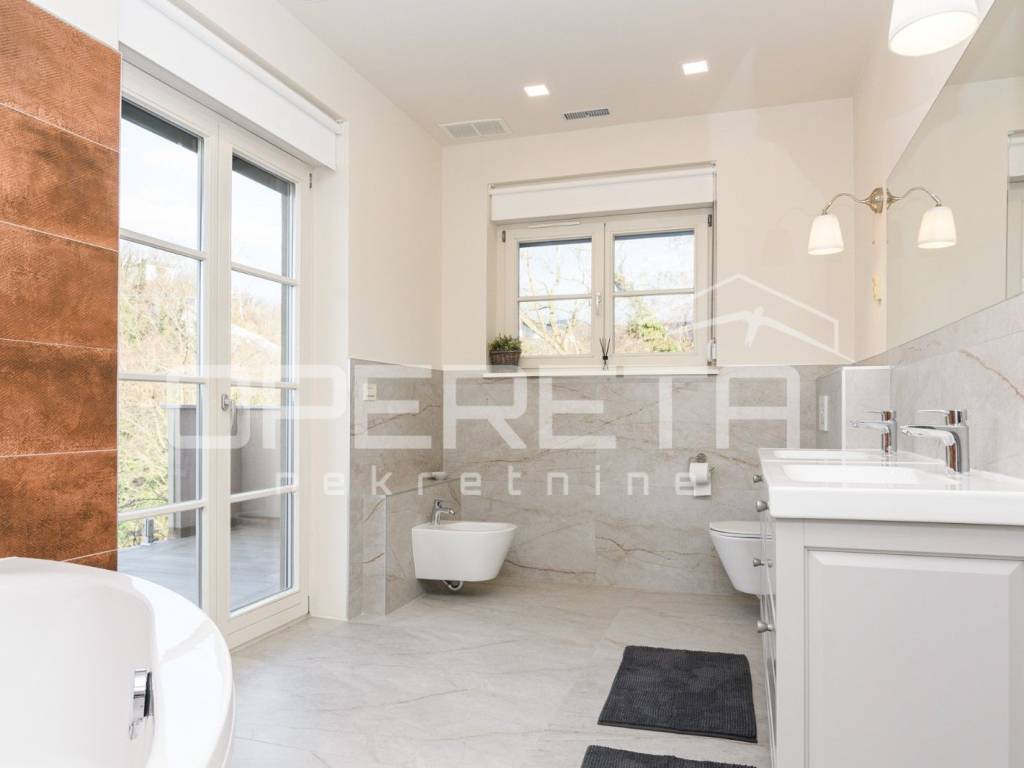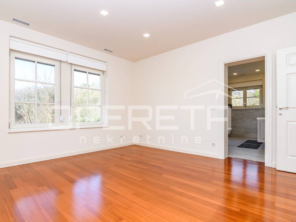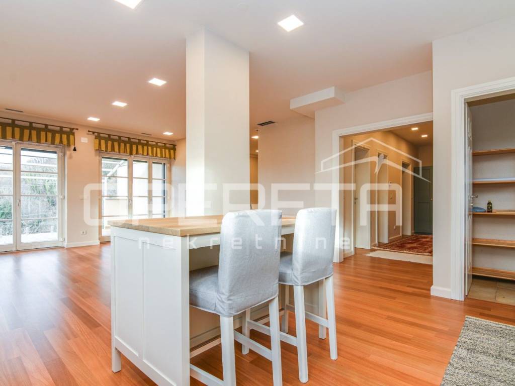 Na mirnoj lokaciji na Medveščaku iznajmljuje se prostran, novo uređen stan s otvorenim pogledom na grad. Ulazni prostor vodi u dnevni boravak povezan s modernom kuhinjom, iz kojeg se izlazi na veliku terasu, dok su gostinjski WC i kotlovnica smješteni diskretno uz ulaz. Desni dio stana čini jasno odvojen i funkcionalno organiziran privatni dio koji obuhvaća tri spavaće sobe, walk-in garderobu i dvije kupaonice, pri čemu master spavaća soba ima vlastitu kupaonicu i izlaz na balkon. Stanu pripada ostava u prizemlju te dva parkirna mjesta. Stambeni dio ima površinu 148,93 m, dok dvije terase iznose 21,35 m i 20,04 m, što čini ukupnu obračunsku površinu stana ( 190,32m2). Nekretnina se nalazi u mirnom i zelenom okruženju, idealna za kvalitetan obiteljski život ili reprezentativno stanovanje.