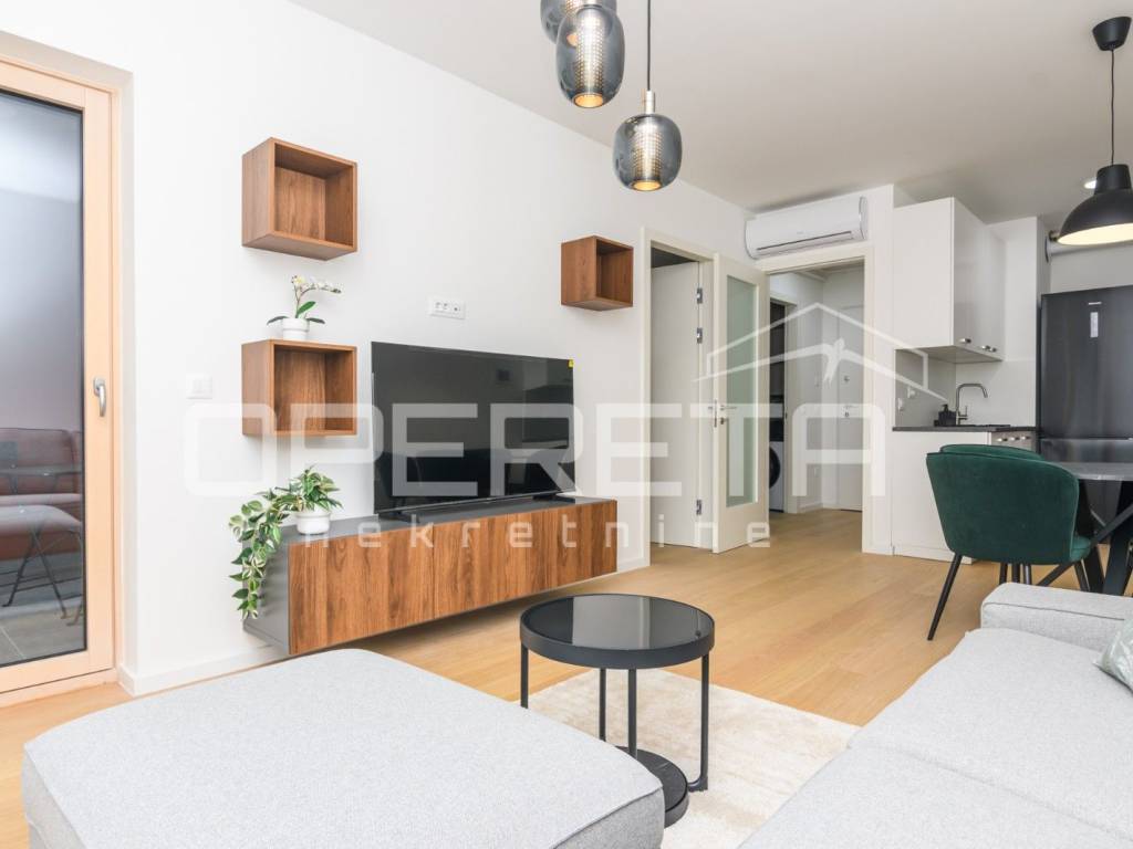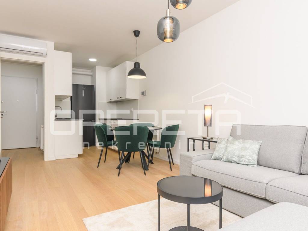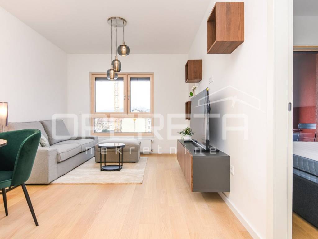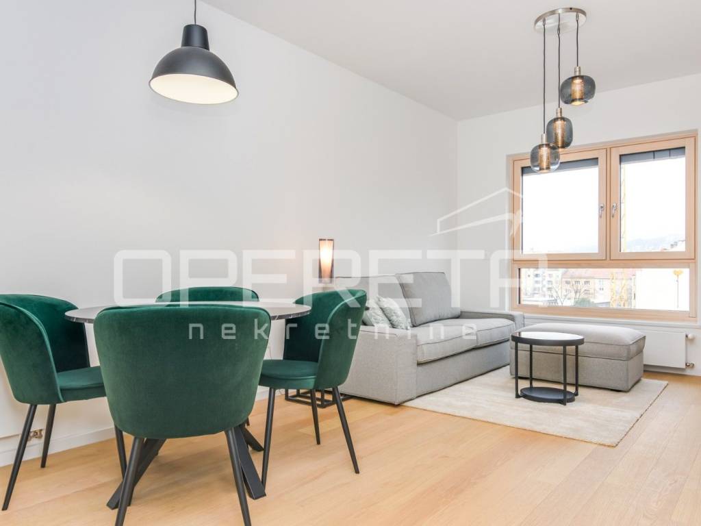 NAJAM, STAN, CANKAREVA, 48m2 Stan na 6. katu s liftom u novogradnji, prvi najam! Kompletno namješten i opremljen s uređajima. Satoji se od hodnika, kupaonice, open space kuhinje s blagavaonicom i dnevnim boravkom s izlazom na loggiu te spavaće sobe. Stanu pripada parkirno mjesto u garaži. Dostupan odmah!