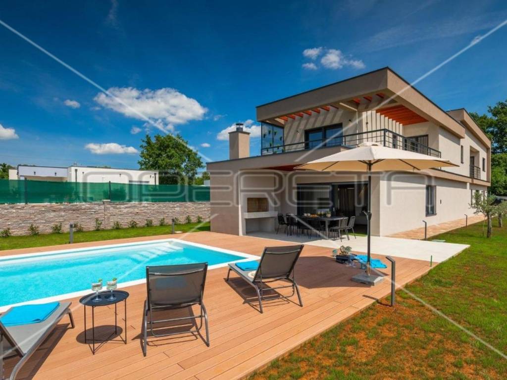 Istra, u samom srcu Istre, nekoliko kilometara od povijesnog gradića Svetvinčenat, smjestila se ova novosagrađena moderna vila neto površine 270 m2.