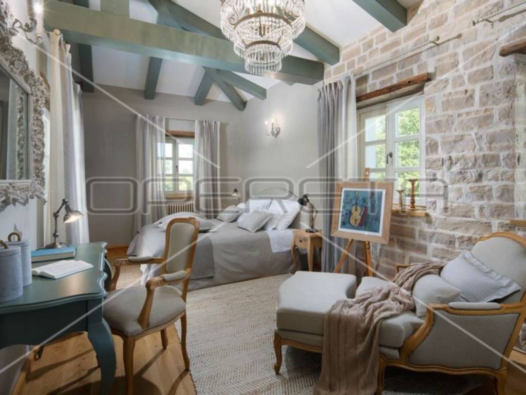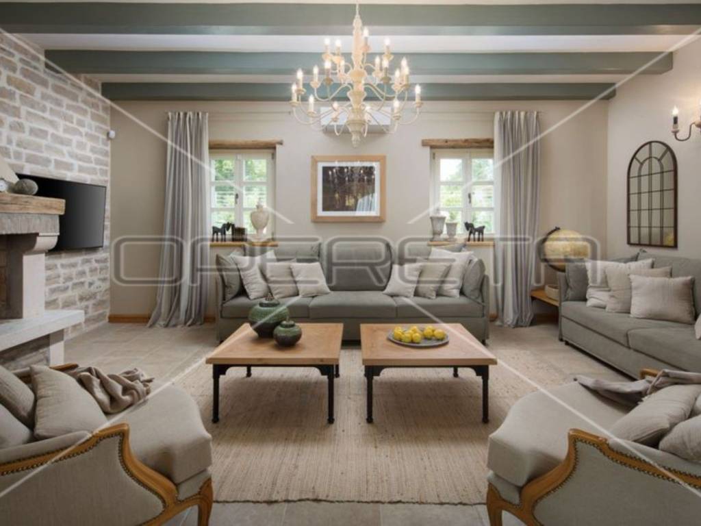 Kvalitetna i elegantna završna izvedba s izvrsnim izborom boja i materijala interijera. Vila je raskošno opremljena i namještena rustikalnim namještajem nudeći vrlo visoku razinu komfora.