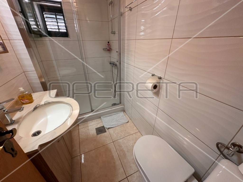 Prizemlje od 35 m sadrži udobnu spavaću sobu, dnevni boravak, potpuno opremljenu kuhinju i kupaonicu od 4,5 m. Ispod unutarnjih betonskih stepenica nalazi se mali spremište s perilicom rublja, idealno za dodatno skladištenje.