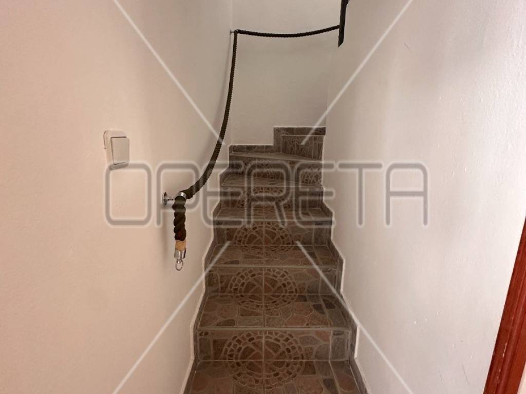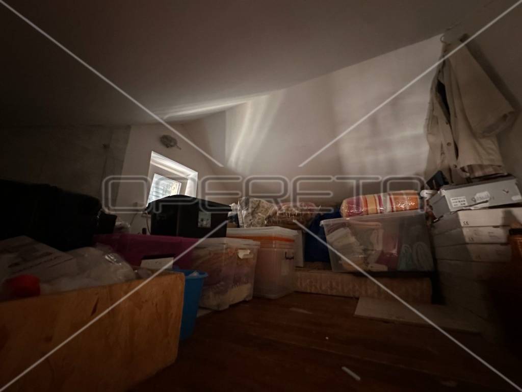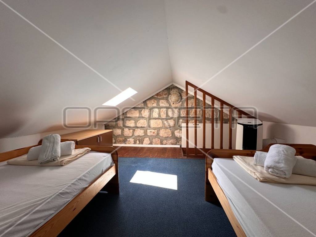 Potkrovlje, kojem se pristupa drvenim stepenicama iz dnevnog boravka, sadrži spavaću sobu s dva kreveta za jednu osobu, dok se drugi dio potkrovlja može koristiti kao spavaći prostor, igraonica ili za druge svrhe, pružajući veliku fleksibilnost.