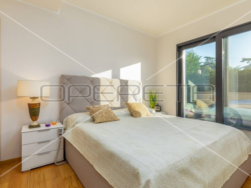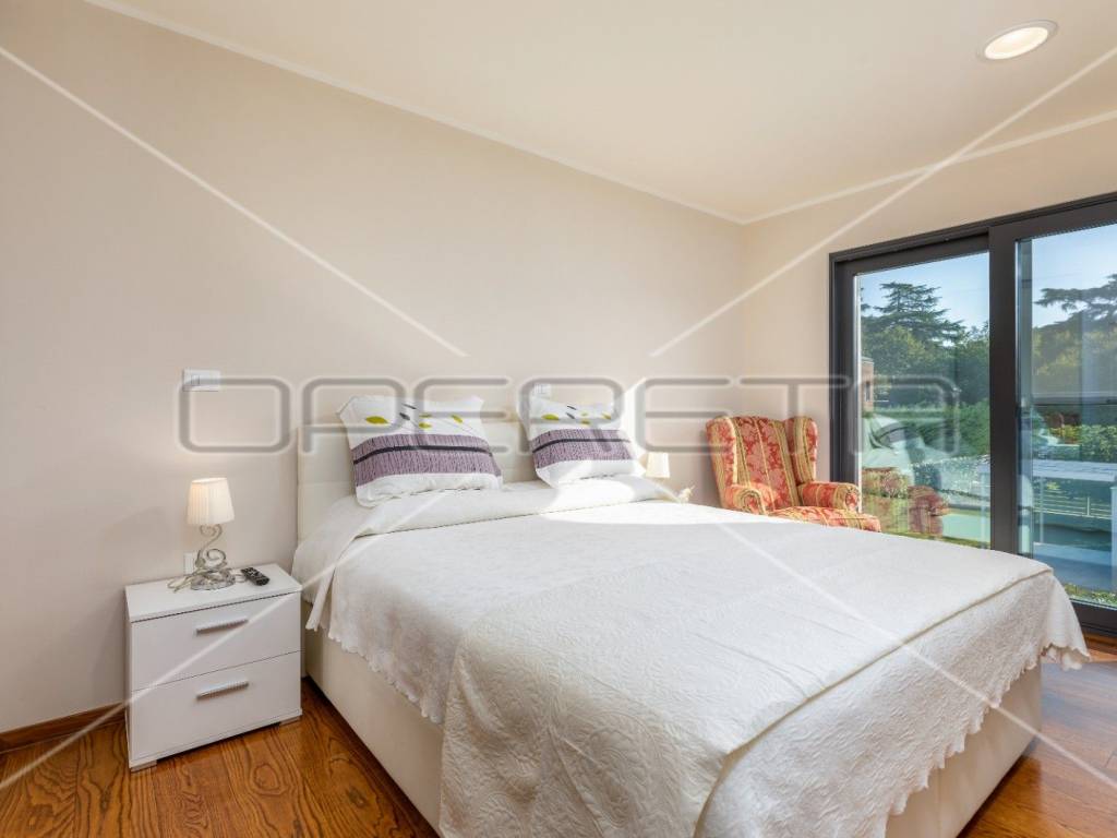 Na prvom katu su se smjestile četiri spavaće sobe, svaka sa svojom kupaonicom i stubište koje vodi na krovnu terasu s koje se pruža predivan nesmetan pogled na more i Brijunsko otočje.
