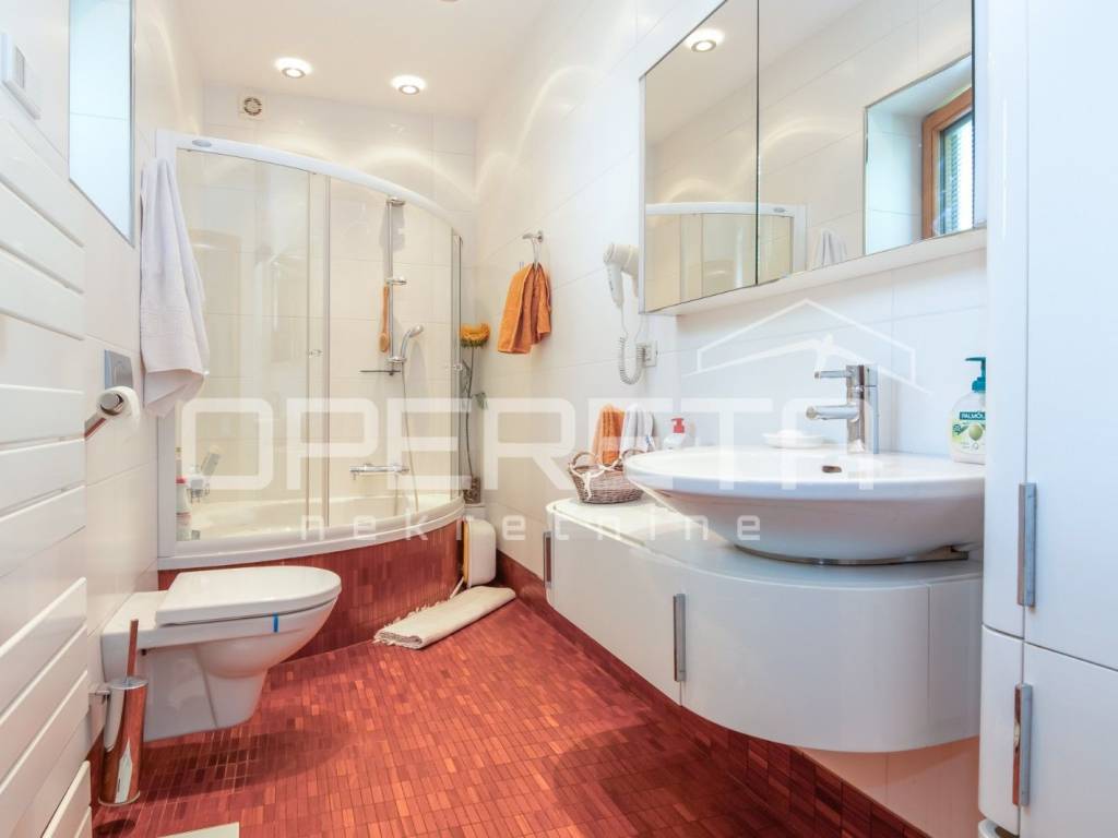 U suterenu je smještena kotlovnica, ostava, toalet i lijep otvoreni prostor za druženje s kuhinjom i kaminom te izlazom na dvorište.