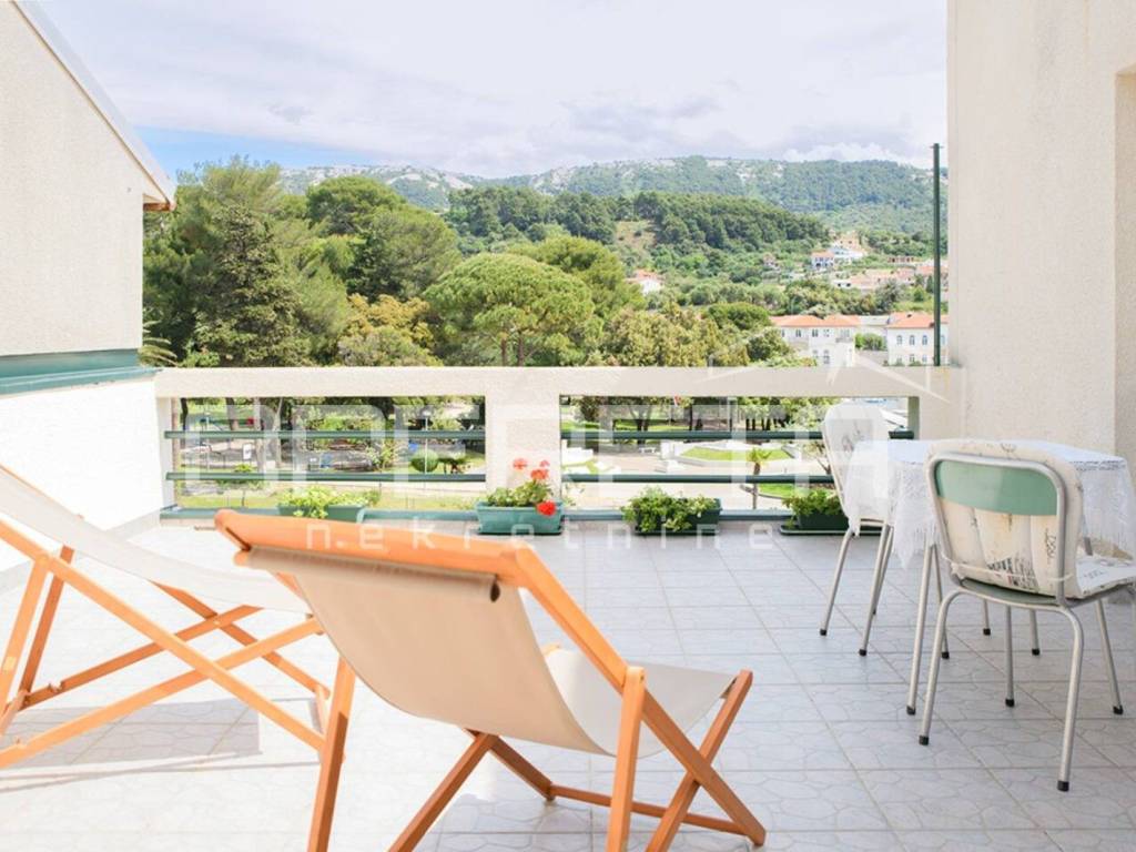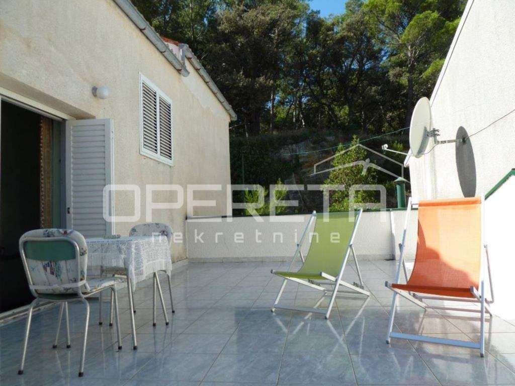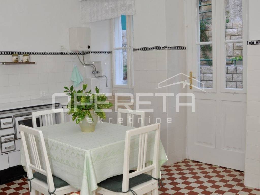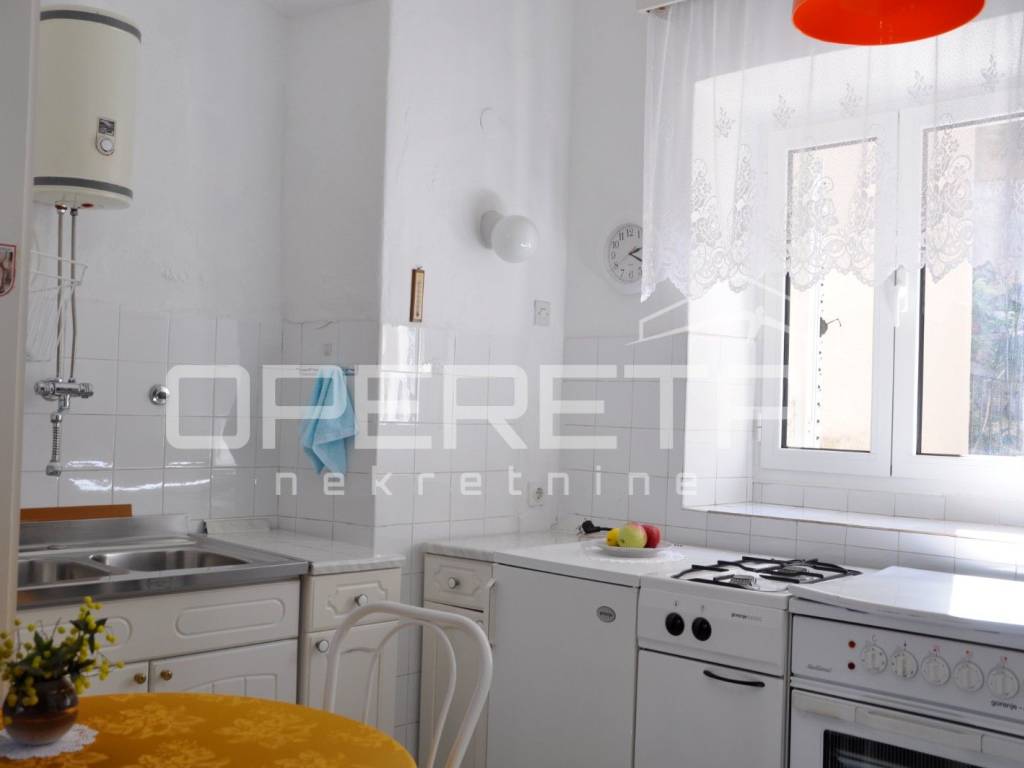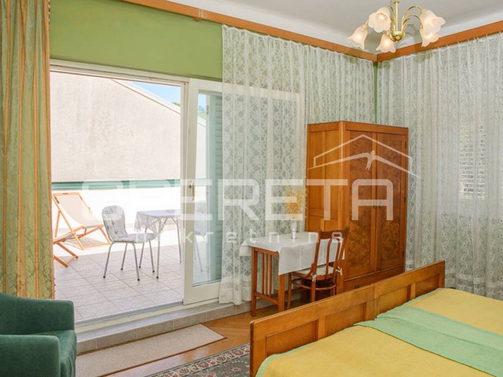 Kuća je uredno održavana i već godinama uspješno u funkciji turizma, s dugogodišnjim gostima koji se vraćaju iz sezone u sezonu. Lokacija je iznimno praktična: u neposrednoj blizini nalaze se trgovine, restorani, gradska tržnica, šetnice, marina, kulturni sadržaji i povijesne znamenitosti starog grada. Do gradskog kupališta dolazi se laganom šetnjom kroz park šumu za približno deset minuta.