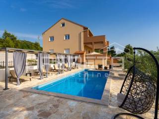 Prodaje se kuća/vila s prekrasnim otvorenim panoramskim pogledom na more, razvedena na tri etaže, s vlastitim bazenom od 32 m2, na parceli od 530 m.