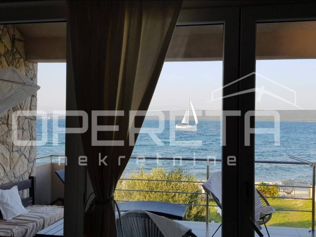 Nekretnina na iznimnoj lokaciji smještena u prvom redu do mora, uz uređenu šetnicu i plažu, s otvorenim pogledom na more i Velebit predstavlja rijetku priliku na tržištu.