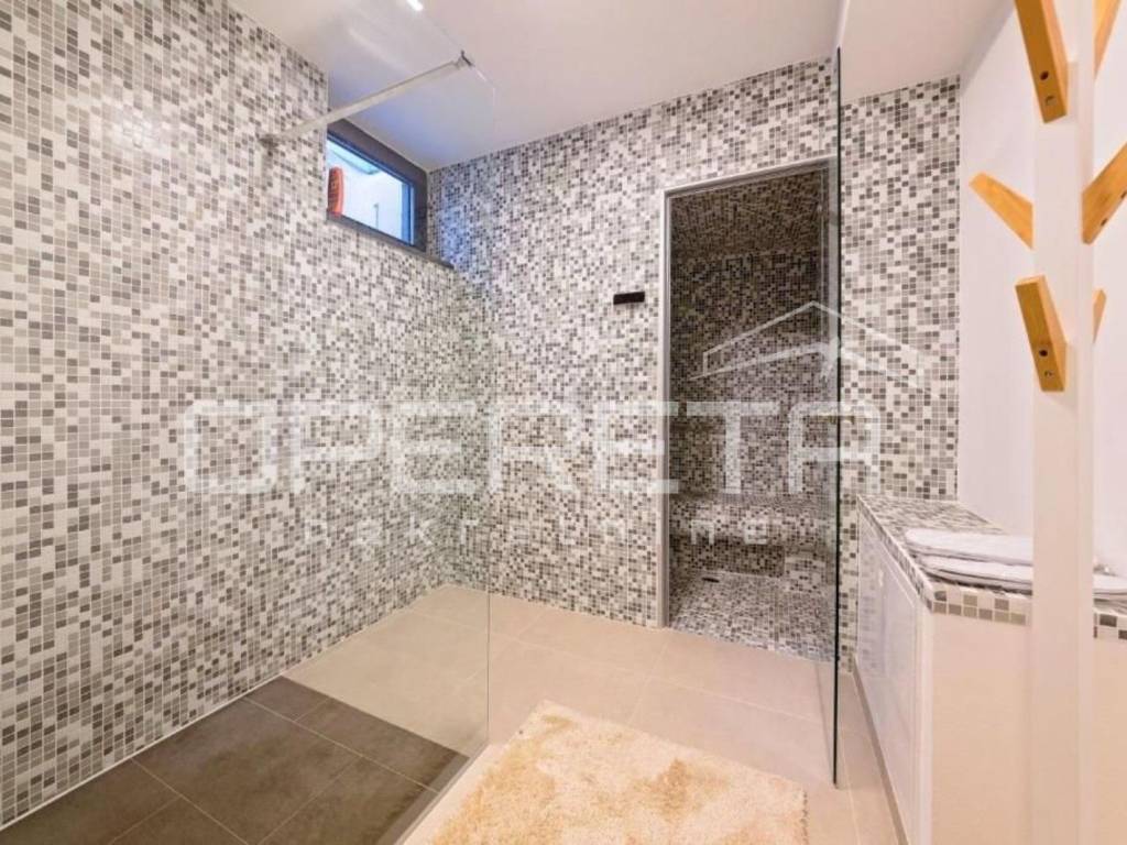 Eksterijer nekretnine podjednako je impresivan, s bazenom okruženim uređenim sunčalištem, natkrivenom terasom za objedovanje na otvorenom te prostorom za roštilj, što vilu čini savršenom za ljetna druženja. Vila je opremljena najmodernijim sustavima grijanja i hlađenja, uključujući podno grijanje, klima uređaje i fancoilere, osiguravajući ugodan boravak tijekom cijele godine. Ova elegantna nekretnina predstavlja rijetku priliku na tržištu, bilo kao prestižan dom za život uz more ili kao visokokvalitetna investicija za turistički najam na vrhunskoj razini.