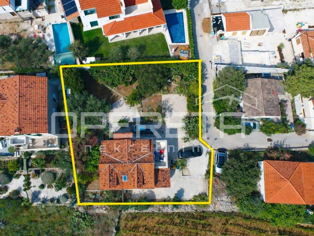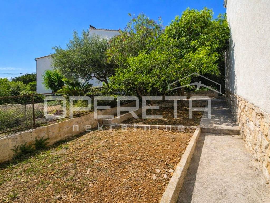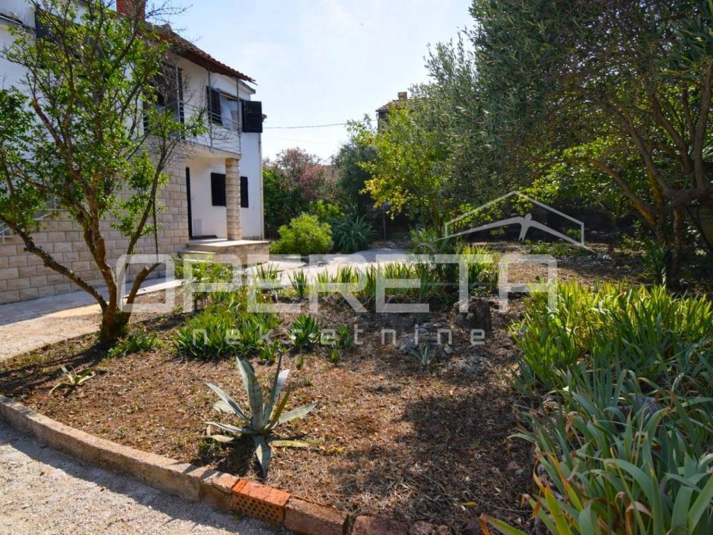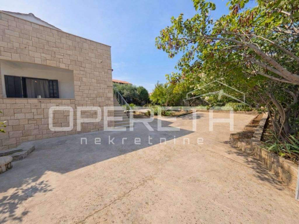 Oko kuće se prostire kultivirani vrt s maslinama, smokvama, oleandrima i mediteranskim raslinjem, dok se s jedne strane parcela graniči s poljoprivrednim zemljištem (vinograd), što dodatno jamči mir i pogled koji ostaje netaknut.
